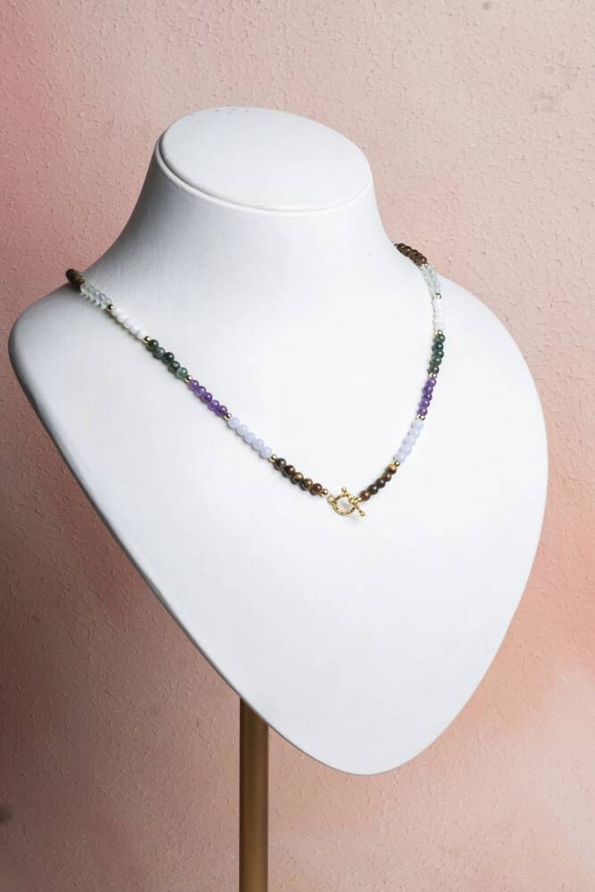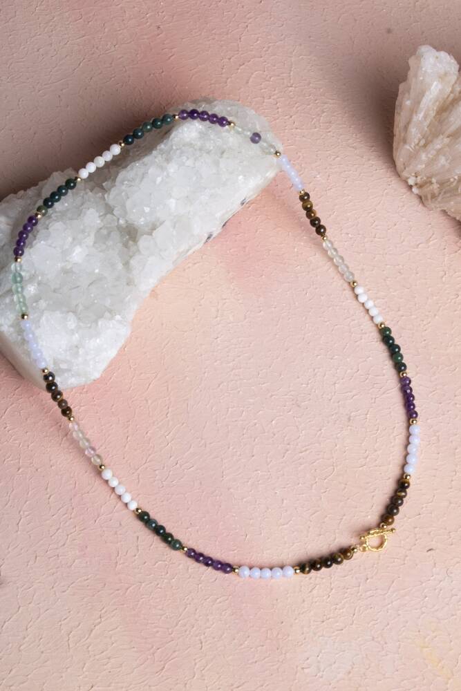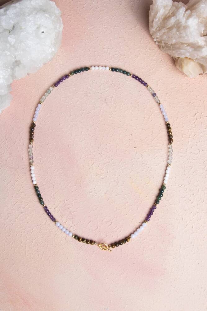 Balık Burcuna Özel Enerji Kolyesi: Denge, Sezgi ve Ruhsal Huzur Denge, sezgi ve ruhsal huzur… Balık burcunun derin, şefkatli ve hayalperest enerjisini kalbinize yakın taşıyın. Bu özel 4mm doğal taş kolye, Balık burcunun sezgisel, empatik, özgün ve ruhsal yönüne hitap eden özenle seçilmiş doğal taşlarla tasarlandı. 4mm'lik narin küreler, kolyeye minimalist ama ruhsal açıdan derin bir anlam katıyor. Kolyedeki Güçlü Taşlar ve Anlamları: Yeşil Florit – Zihinsel karmaşayı temizler, düzen ve netlik kazandırır. Mor Florit – Ruhsal farkındalığı artırır, içgörü ve sezgiyi güçlendirir. Akuamarin – Huzur, duygusal denge ve nazik iletişim enerjisi sunar. Kaplan Gözü – Cesaret, kararlılık ve koruma enerjisi verir. Ay Taşı – Sezgiyi güçlendirir, içsel rehberlik ve duygusal uyum sağlar. Kan Taşı – Canlandırıcı enerji, dayanıklılık ve yaşam gücü kazandırır. Ametist – Zihin ve ruh arasında denge kurarak huzur ve koruma sağlar. Bu yedi taşın uyumu, Balık burcunun derin hislerini, ruhsal yolculuğunu ve şefkatli doğasını dengeli ve zarif bir şekilde yansıtır. 4mm Kolye için Öne Çıkan Özellikler: Sertifikalı Yeşil Florit, Mor Florit, Akuamarin, Kaplan Gözü, Ay Taşı, Kan Taşı ve Ametist taşları. Balık burcuna özel enerji: Sezgi, ruhsal denge, huzur, cesaret ve netlik. Zarif 4mm Boyut: Doğal taşların gücünü taşıyan, günlük kullanım için ideal, minimalist ve narin tasarım. Feminen ve Güçlü Görünüm: Hem enerjisel denge sunar hem de günlük stilinize sofistike bir dokunuş katar. Kalbe Yakın Enerji: Sezgi ve ruhsal huzuru destekleyen taşları boynunuzda taşıyarak duygusal ve spiritüel destek sağlayın. Bu kolye; sadece bir aksesuar değil, aynı zamanda Balık burcunun sezgisel, huzurlu ve koruyucu enerjisini taşıyan, kalbinize ve ruhunuza dokunan özel bir parçadır.