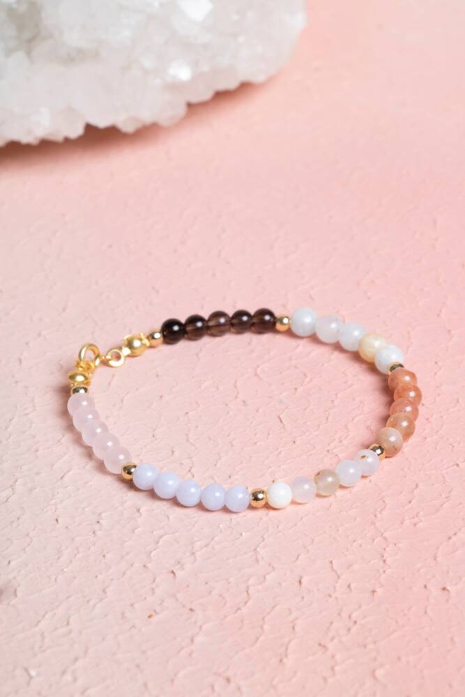 %100 doğal ve sertifikalı taşlarla hazırlanmış bu bileklik, kadınlara özel zarif tasarımıyla hem ruhsal destek sunar hem de günlük stilinize şıklık katar.