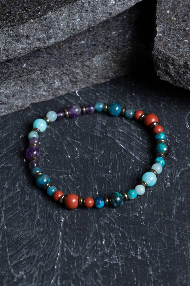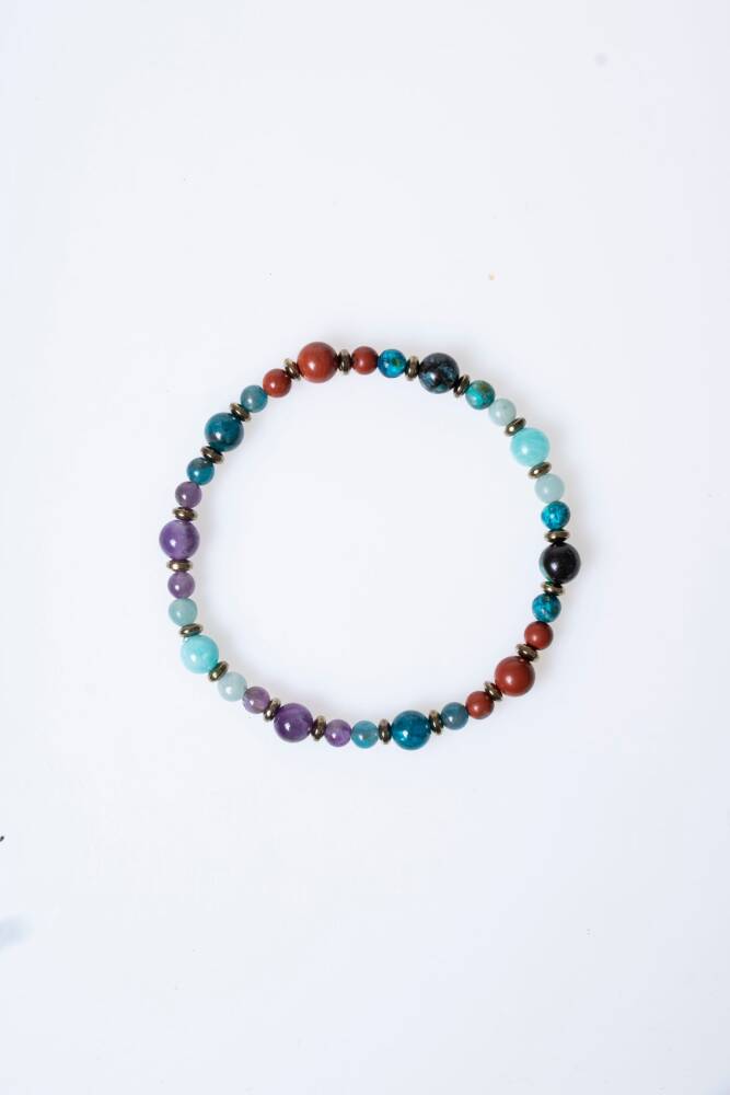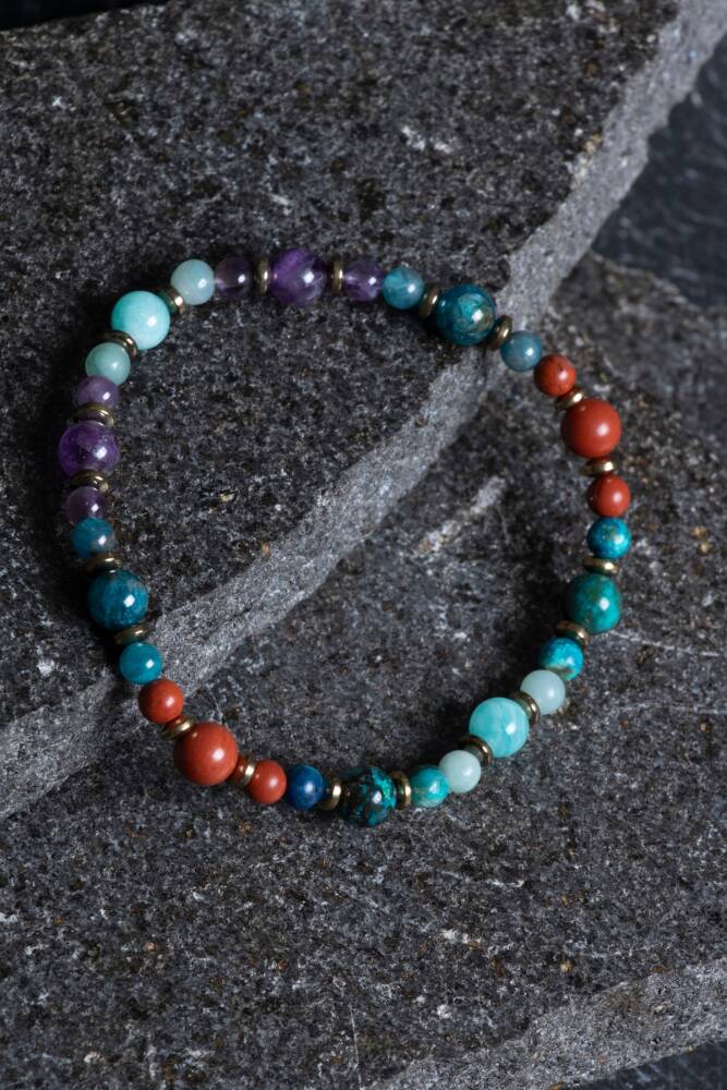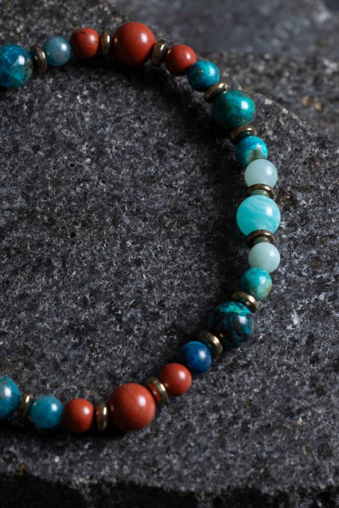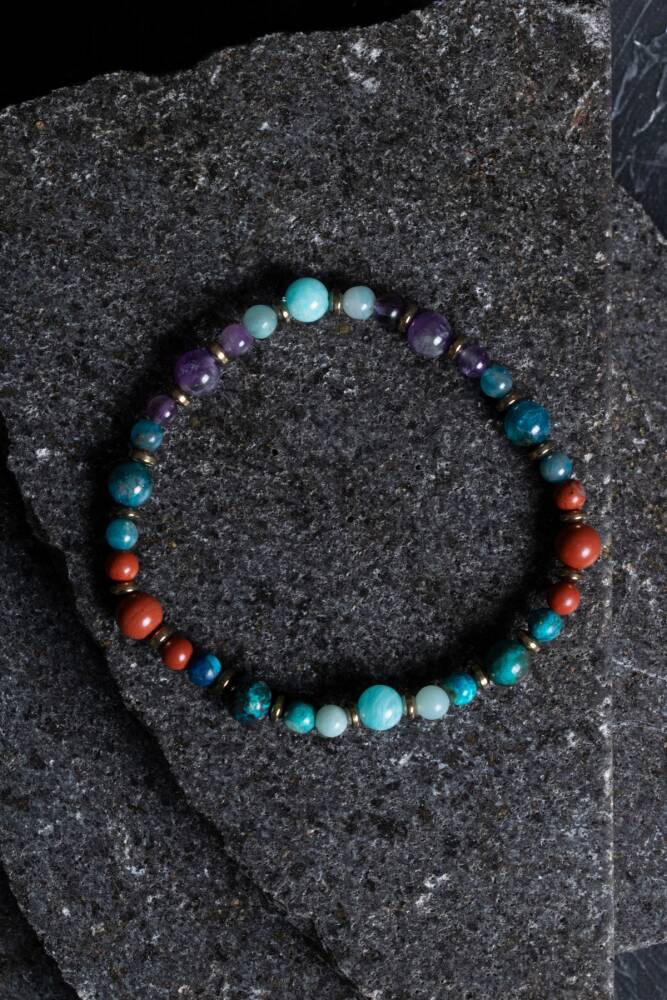 Detaycılığı, yardımseverliği ve analitik zekasıyla tanınan Başak burçları için özel olarak seçilen; Amazonit, Krizokol, Jasper, Ametist ve Apatit taşları bu eşsiz misinalı tasarımda buluştu. Bu bileklik, Başak burcunun mükemmeliyetçi yapısını sakinleştirirken, enerjisel bir koruma ve zihinsel denge sunmak için tasarlandı.