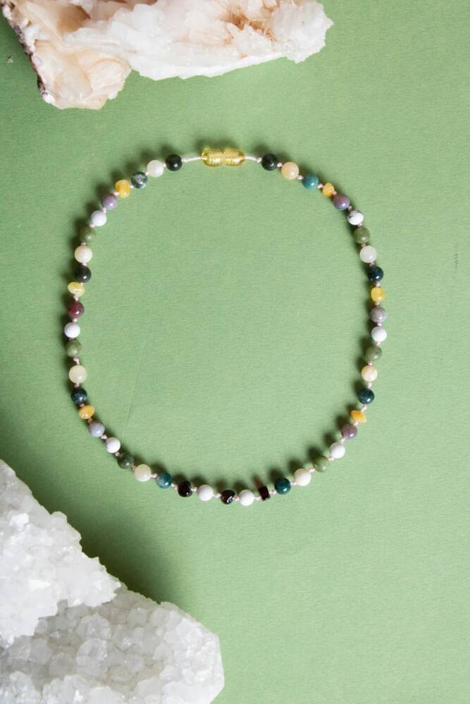 Sertifikalı Bebek Kehribar Kolye (33-35 CM) Kehribar: Bebeklerin diş çıkarma dönemindeki huysuzluğunu azaltır ve antibiyotik etkisiyle enfeksiyonlara karşı savaşır. Ayrıca kulak ve boğaz ağrılarına iyi gelir ve gaz sorunlarına karşı etkilidir. Bebeğin uykusunu iyileştirmeye yardımcı olur. Kehribar kolyenin bebekler için bir dizi potansiyel faydası vardır: ; Diş Çıkarma Döneminde Rahatlama:Kehribar kolyenin ısınmasıyla salgıladığı doğal reçine içindeki succinic asit, bebeklerin diş çıkarma sürecindeki huysuzluk ve rahatsızlık hissini azaltabilir. Bu, bebeklerin daha az ağlaması ve daha rahat bir dönem geçirmesi anlamına gelir. Antibakteriyel ve Antiinflamatuar Etki:Kehribarın içerisinde bulunan succinic asit, antibakteriyel ve antiinflamatuar özelliklere sahiptir. Bu sayede, enfeksiyon riskini azaltabilir ve diş eti iltihaplanmasını hafifletebilir. Ağrı ve Sızıyı Azaltma:Kehribarın cilde temasıyla ısınması, hafif bir analjezik etki sağlayabilir. Bu da bebeğin diş çıkarma sürecindeki ağrı ve sızılarını hafifletebilir. Daha İyi Uyku: Bazı ebeveynler, kehribar kolyenin bebeğin uykusunu iyileştirdiğini rapor etmiştir. Rahatlatıcı etkileri sayesinde, bebeklerin daha derin ve daha uzun süreli uyumalarına yardımcı olabilir. Gaz Problemlerini Azaltma:Bazı ebeveynler, kehribar kolyenin bebeklerin gaz sancılarını hafiflettiğini belirtmiştir. Ancak, bu konuda bilimsel kanıtlar sınırlıdır ve etkileri bireysel olarak değişebilir. Kehribar kolyenin faydaları konusunda daha fazla araştırma yapılması gerekmekle birlikte, birçok ebeveyn ve bebek bakım uzmanı bu tür kolyelerin bebekler için rahatlatıcı ve destekleyici olduğunu düşünmektedir. Kehribar: Negatif enerjiyi dönüştürür, stresi azaltır, bağışıklığı destekler. Yeşim: Huzur ve şifa taşır, bolluk ve bereketi simgeler. Havlit: Sakinlik verir, öfkeyi dengeler, sabrı artırır. Kalsit: Enerjiyi yükseltir, zihni berraklaştırır, öğrenme yetisini destekler. Hint Akik: Ruhsal denge sağlar, koruma ve güç verir. Yosunlu Akik: Doğayla uyum getirir, yenilenme ve tazelenmeyi destekler.