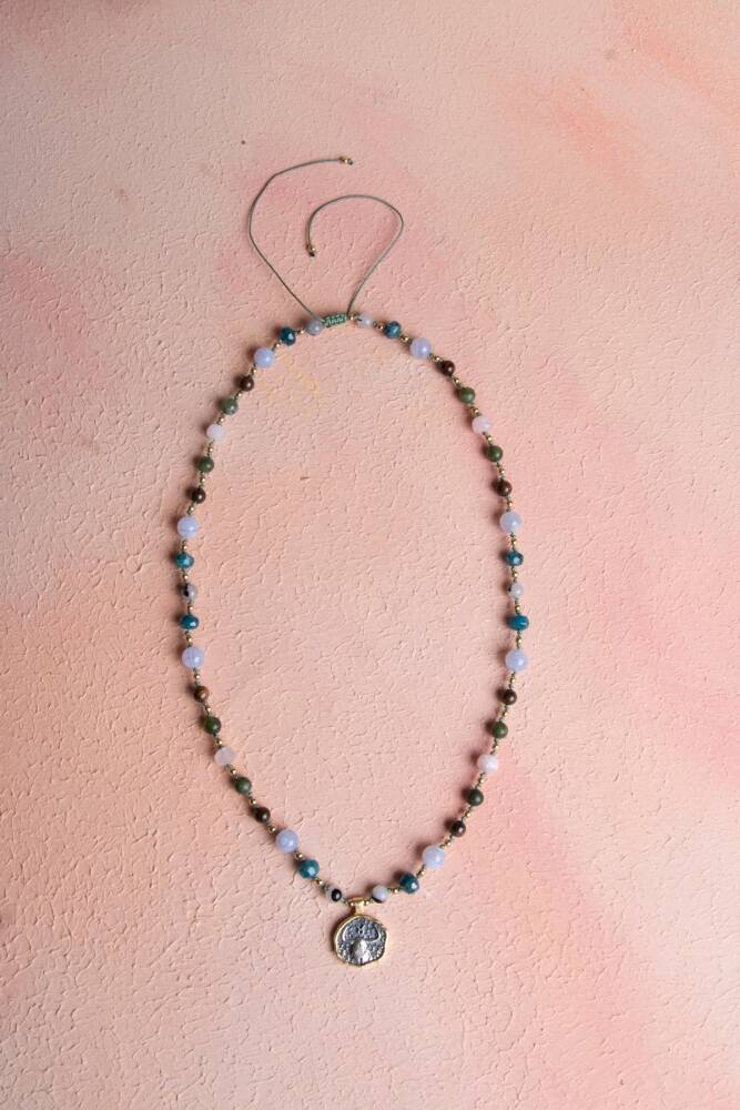 %100 doğal ve sertifikalı taşlarla el işçiliğiyle hazırlanan bu kolye, hem ruhsal destek sağlar hem de günlük stilinize şık bir dokunuş katar.