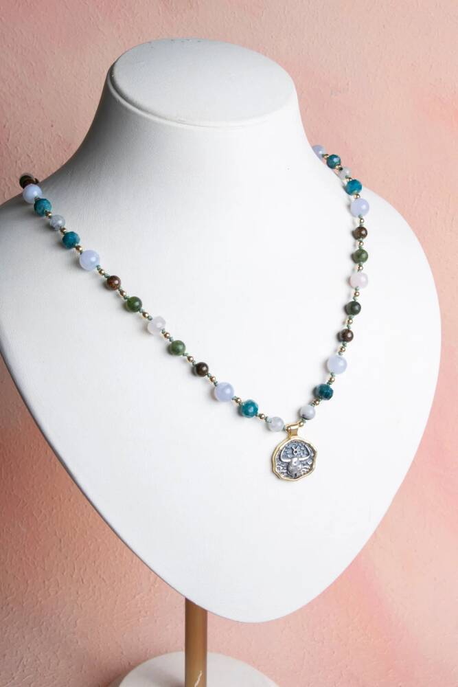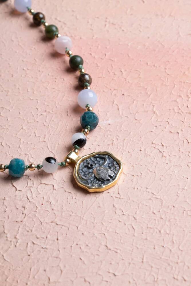 Güven, istikrar ve huzur... Boğa burcunun sabırlı, kararlı ve doğayla uyumlu ruhunu yansıtan bu özel makrome kolye; Ay Taşı, Apatit, Kalsedon, Bronzit, Yeşim ve Pembe Kuvars enerjisiyle tasarlandı. %100 doğal ve sertifikalı taşlarla el işçiliğiyle hazırlanan bu kolye, hem ruhsal destek sağlar hem de günlük stilinize şık bir dokunuş katar. Taşların Enerjisi: Ay Taşı: Duygusal denge ve içsel huzur sağlar. Apatit: Zihinsel netlik ve içsel motivasyon verir. Kalsedon: Sakinlik ve duygusal denge getirir. Bronzit: Kararlılık, odaklanma ve cesaret sağlar. Yeşim: Huzur, bilgelik ve uyum enerjisi sunar. Pembe Kuvars: Sevgi, şefkat ve duygusal huzur verir. Öne Çıkan Özellikler: %100 doğal ve sertifikalı taşlar. Boğa burcuna özel seçilmiş güçlü taş kombinasyonu. Kadınlara özel zarif makrome tasarım. El işçiliği, dayanıklı ve şık kullanım. Günlük kombinlerde hem enerjisel denge hem estetik katkı. Bu kolye, sadece bir aksesuar değil; Boğa burcunun güvenilir, huzurlu ve estetik doğasını taşıyan özel bir parçadır.