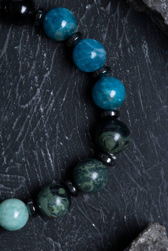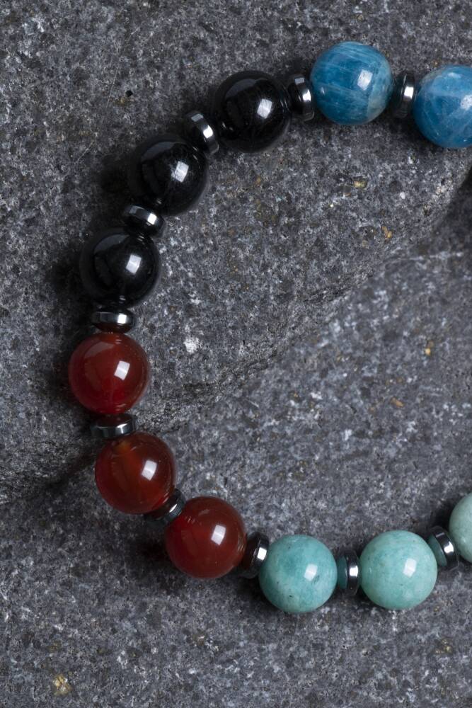 Bu özel erkek bilekliği, Başak burcunun titiz, pratik ve detaycı doğasına uyum sağlayan güçlü doğal taşlarla tasarlandı: