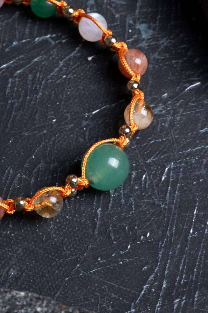 Bu taşların dengeli birlikteliği, İkizler burcunun hem duygusal hem zihinsel ihtiyaçlarına hitap eder. %100 doğal ve sertifikalı taşlarla hazırlanmış bu özel bileklik, el işçiliğiyle örülen makrome tasarımı ile şık ve kullanışlıdır.