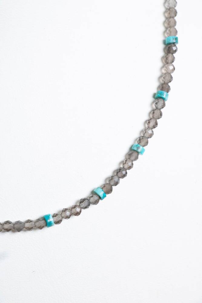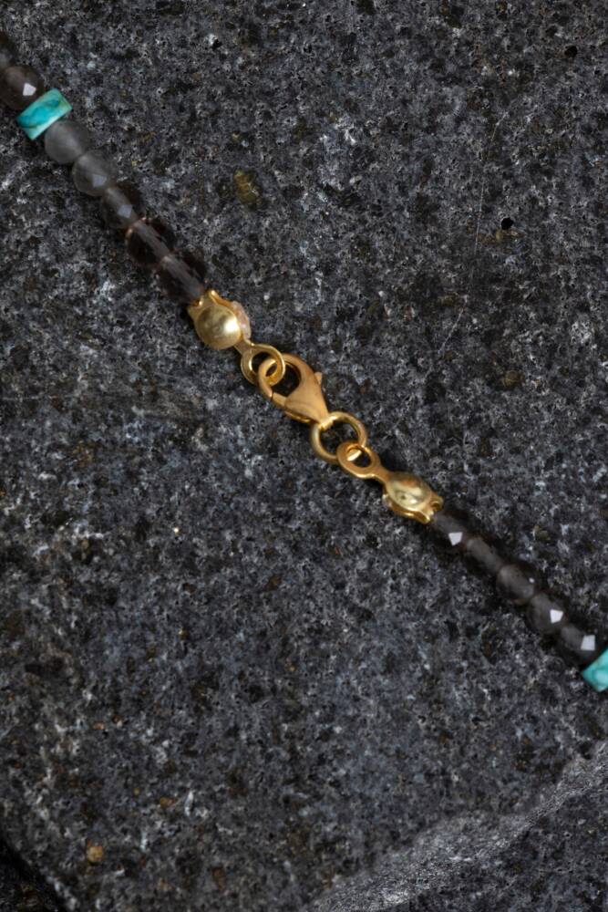 Koruma, denge ve içsel güç bu özel kolyede bir araya geliyor. Dumanlı Kuvars; stres, kaygı ve negatif enerjilere karşı güçlü bir topraklama sağlar. Zihni sakinleştirir, ruhsal dengeyi destekler. Turkuaz ise tarih boyunca koruyucu ve şifa verici taşı olarak bilinir; iletişimi güçlendirir, iç huzur ve özgüven kazandırır. Bu özel kolye, sertifikalı doğal Dumanlı Kuvars ve Turkuaz taşlarının uyumuyla hazırlanmıştır. Her taş, özgün dokusunu ve enerjisini koruyarak el işçiliğiyle dizilmiş, sade ama etkileyici bir tasarıma dönüştürülmüştür. ✨ Öne Çıkan Özellikler: Sertifikalı doğal Dumanlı Kuvars ve Turkuaz taşları Negatif enerjiden korunma, içsel denge ve güçlü iletişim desteği El yapımı, zarif ve unisex tasarım Hem günlük kullanım hem de anlamlı bir hediye alternatifi Doğallığı ve enerjiyi birleştiren özgün bir parça Bu kolye; koruyucu enerjisi ve sade şıklığıyla sadece görünümünüzü değil, ruh halinizi de dengeleyen bir tasarımdır.