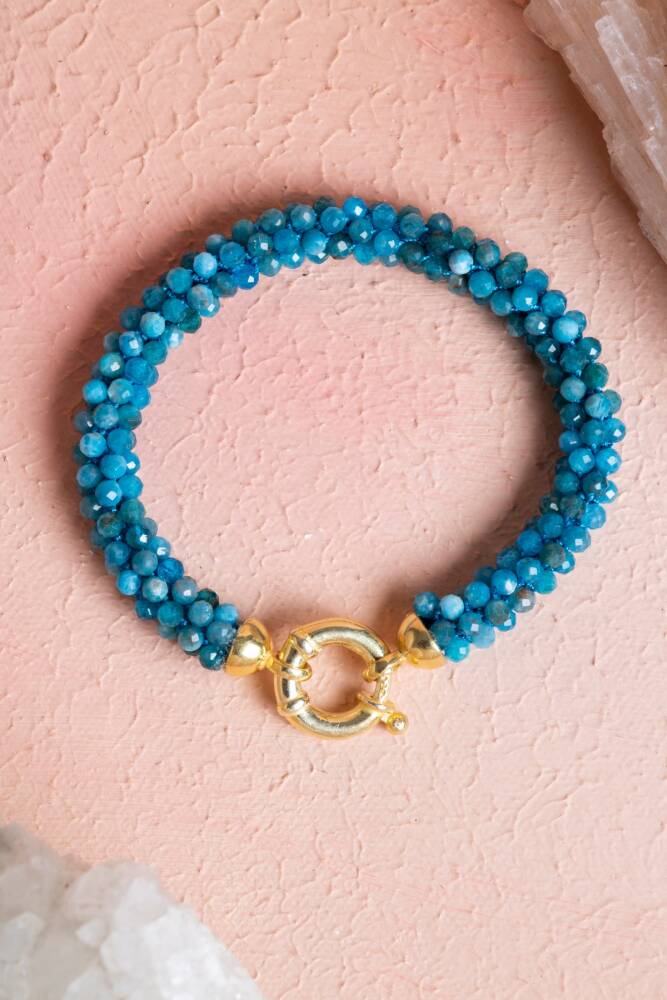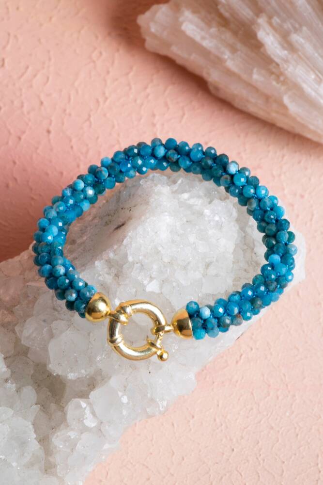 Ustalıkla Örülmüş Tasarım: Her bir Apatit tanesinin özenle birleştirildiği El İşçiliği Örme tekniği, bilekliğin enerjisini güçlendirir ve cilde yumuşak, konforlu bir temas sağlar.