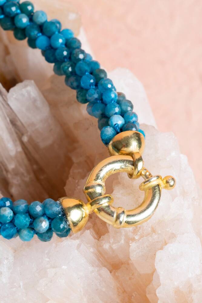 Motivasyonu, ilhamı ve zihinsel berraklığı bileğinizde hissedin! Apatit doğal taşının büyüleyici mavi ve yeşil tonları ile entelektüel enerjisi, usta El İşçiliği Örme tekniğiyle hazırlanmış bu özel bileklikte birleşiyor. Şık ve güvenli Gümüş Kapama detayıyla tamamlanan bu bileklik, size sürekli odaklanma, yaratıcılık ve hedeflerinize ulaşma motivasyonu sağlayan güçlü bir enerji kaynağıdır.
