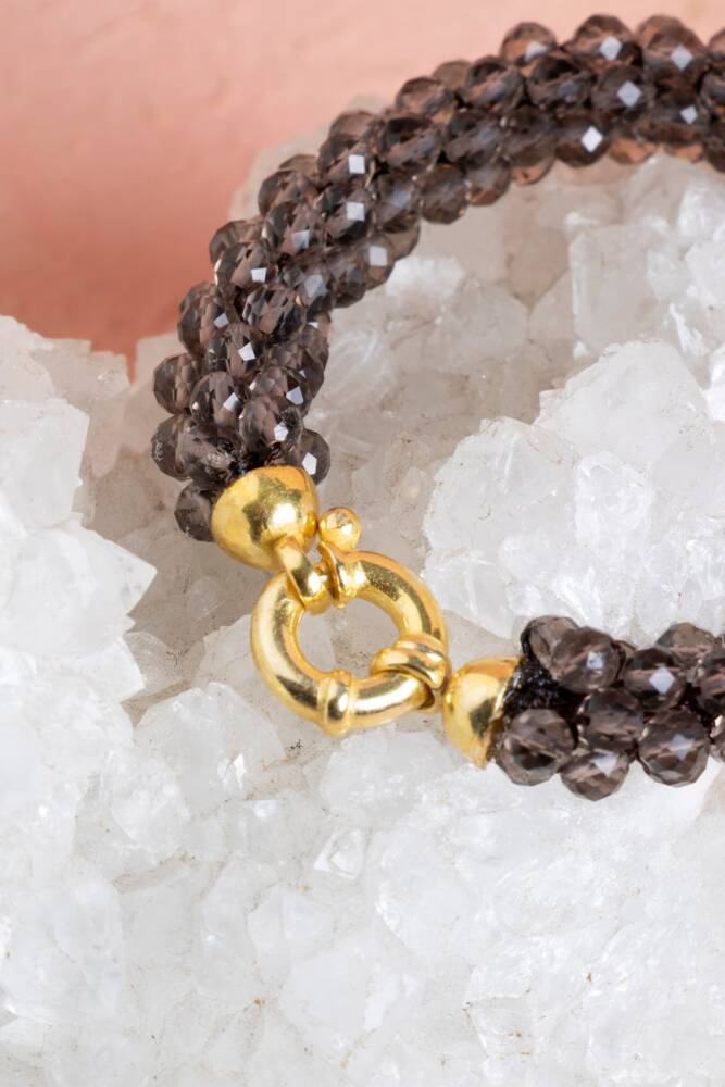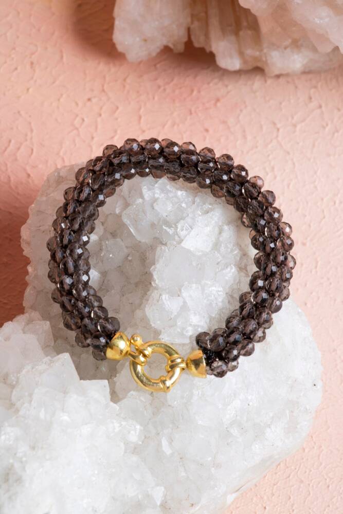 Ustalıkla Örülmüş Tasarım: Her bir Dumanlı Kuvars tanesinin özenle birleştirildiği El İşçiliği Örme tekniği, bilekliğin enerjisini güçlendirir ve cilde yumuşak, konforlu bir temas sağlar.