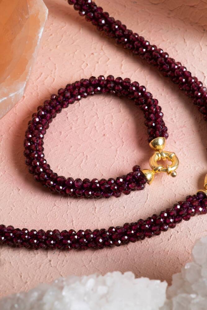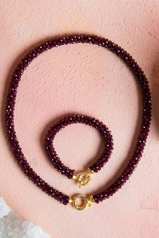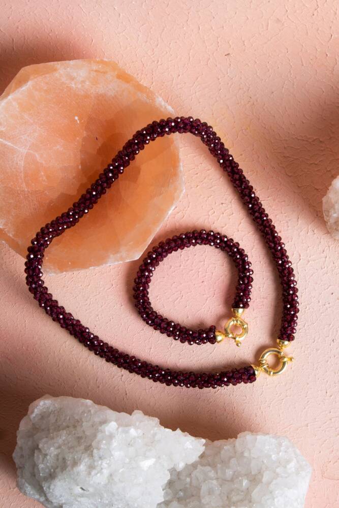 Tam Set Enerjisi: Kolye ve bilekliğin birlikte kullanımı, Lal (Granat) taşının enerjisini vücudunuzun farklı noktalarında yoğunlaştırarak etkisini maksimize eder.