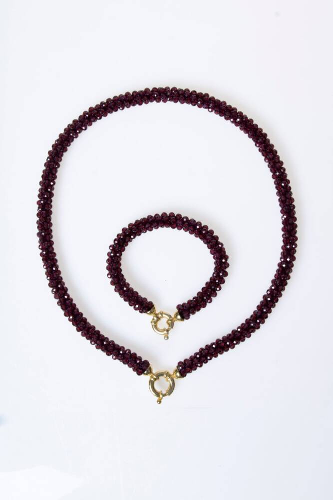 El İşçiliği Örme Lal (Granat) Gümüş Kapama Kolye & Bileklik Seti