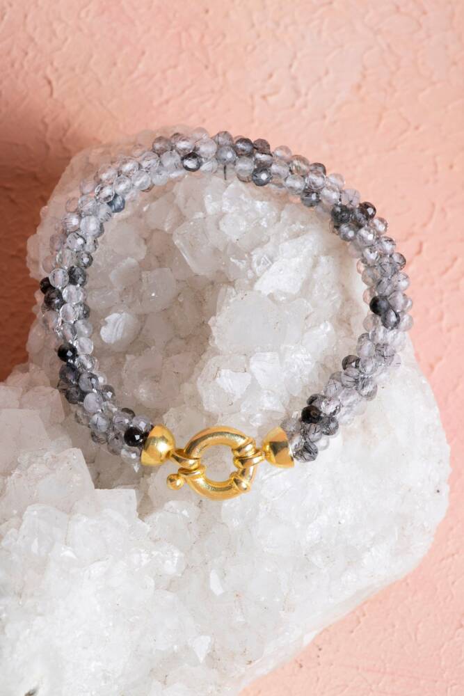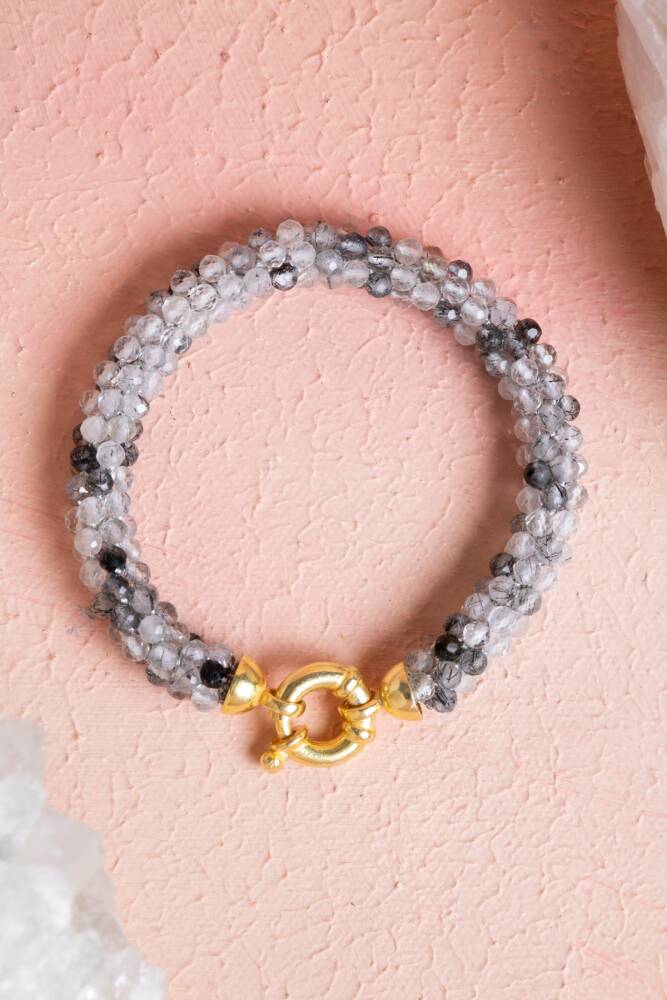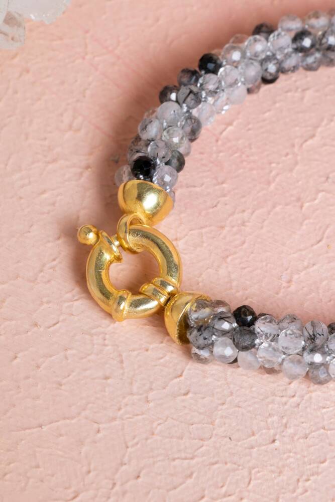 Ustalıkla Örülmüş Tasarım: Her bir Rutilli Kuvars tanesinin özenle birleştirildiği El İşçiliği Örme tekniği, bilekliğin enerjisini güçlendirir ve cilde yumuşak, konforlu bir temas sağlar.