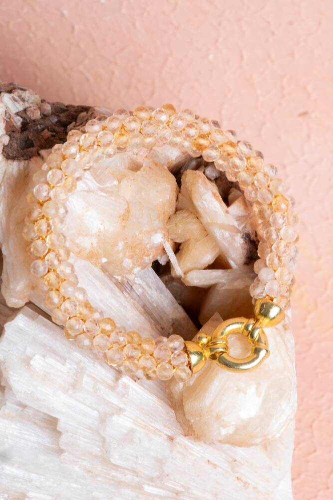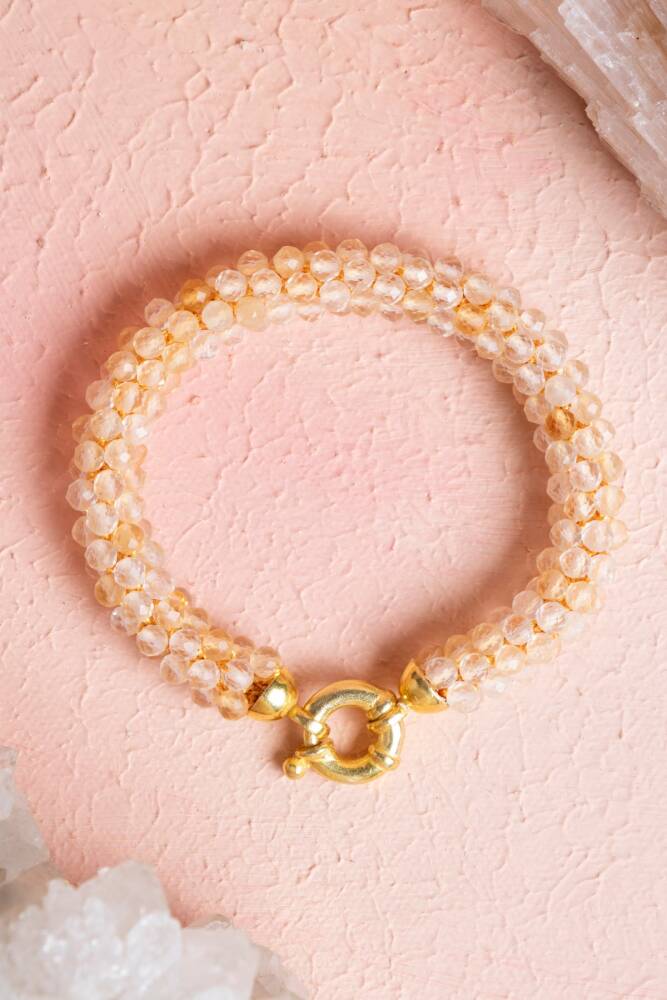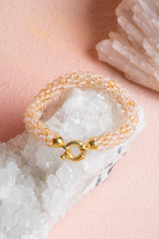 Ustalıkla Örülmüş Tasarım: Her bir Sitrin tanesinin özenle birleştirildiği El İşçiliği Örme tekniği, bilekliğin enerjisini güçlendirir ve cilde yumuşak, konforlu bir temas sağlar.