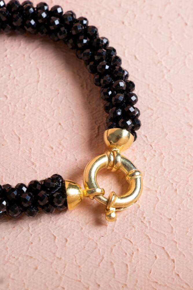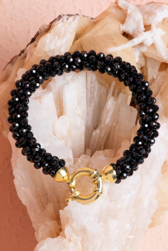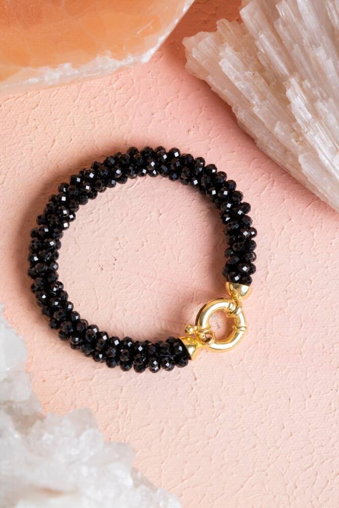 Ustalıkla Örülmüş Tasarım: Her bir Siyah Turmalin tanesinin özenle birleştirildiği El İşçiliği Örme tekniği, bilekliğin enerjisini güçlendirir ve cilde yumuşak, konforlu bir temas sağlar.