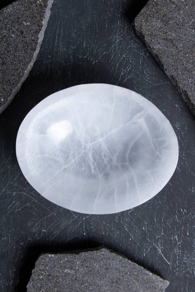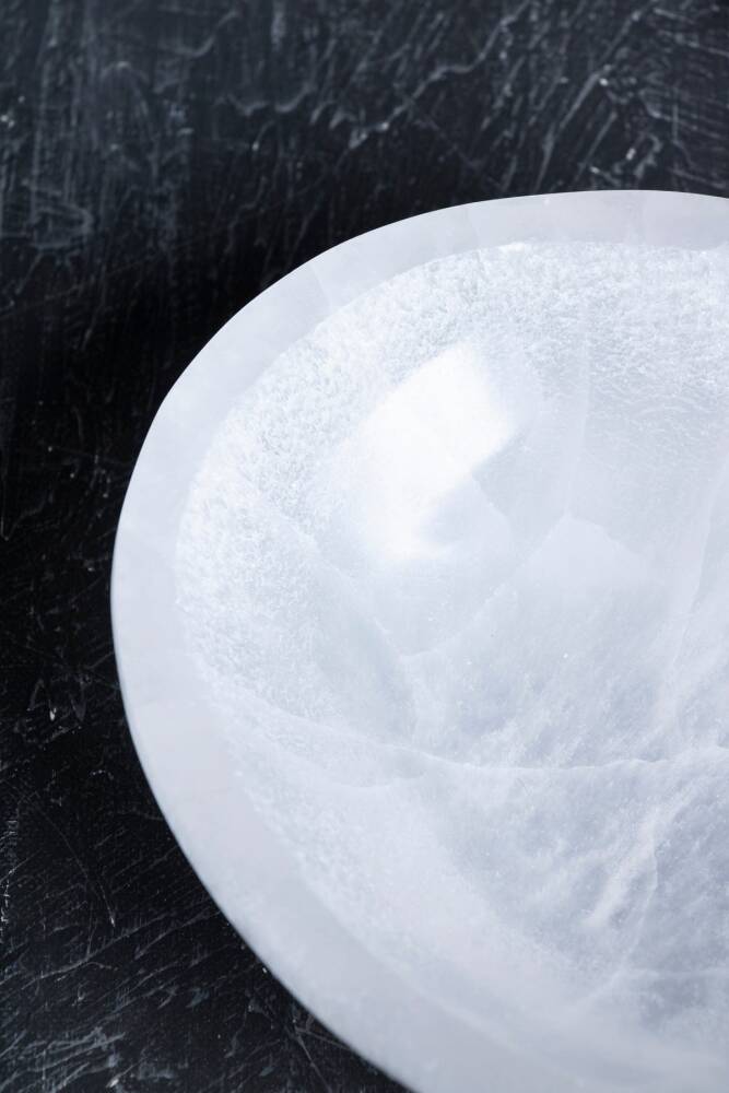 Zarif ve Modern Estetik: Elipsin uzun ve akıcı hatları, Selenit'in yarı saydam ışıltısıyla birleştiğinde, çağdaş, zarif ve dingin bir estetik sunar.
