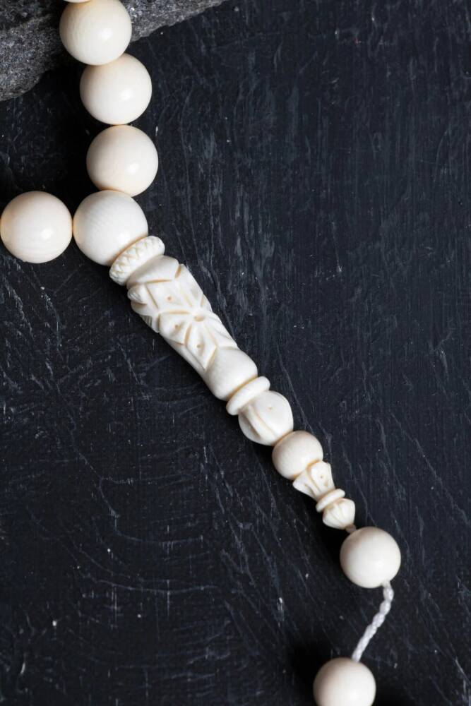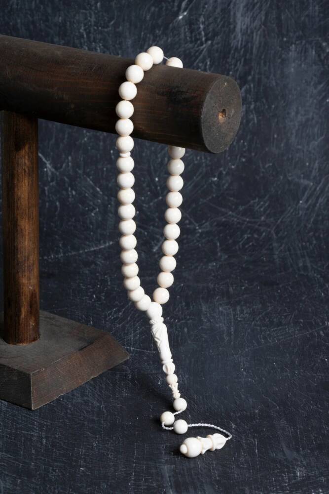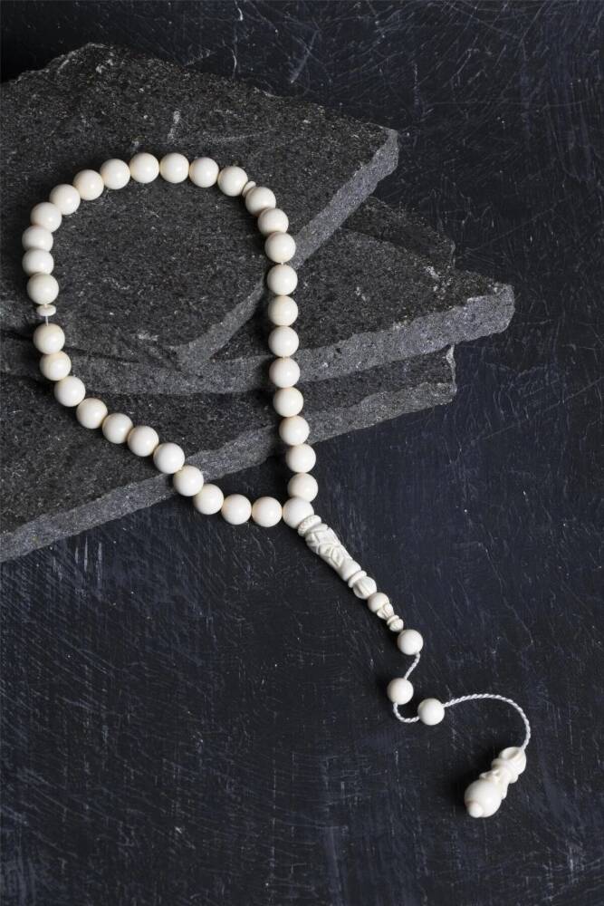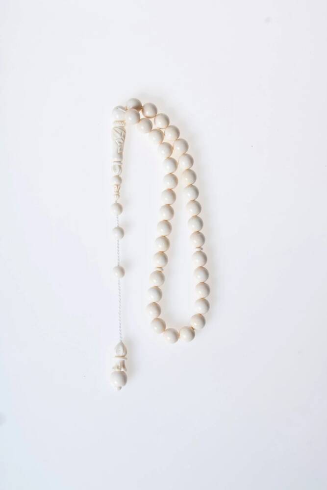 Fildişi 9 mm 33'lük Tesbih (Yaklaşık 40 gr) Zarifliği, asil duruşu ve özel dokusuyla dikkat çeken Fildişi malzemenin eşsiz hissiyle tanışın. 9 mm tane büyüklüğünde, yaklaşık 40 gram ağırlığındaki bu özel 33'lük Tesbih, şıklık, konfor ve otantik bir his arayanlar için tasarlandı. Özel Dokunun ve Kullanımın Büyüleyici Özellikleri Mükemmel Dokunma Hissi: Fildişini andıran pürüzsüz ve kadifemsi yüzeyi sayesinde elinizde kayar ve keyifli bir çekim deneyimi sunar. İdeal Ağırlık ve Boyut: Yaklaşık 40 gram civarındaki dengeli ağırlığı ve 9 mm tane boyutu ile ne çok hafif ne de çok ağırdır; günlük kullanım ve zikir için idealdir. Asil ve Zamansız Görünüm: Malzemenin krem-beyaz tonları ve doğal görünümü, tesbihe otantik ve asil bir hava katarak klasik bir şıklık sunar. 33'lük Pratik Form: Günlük zikirler, tesbihatlar ve odaklanma egzersizleri için özel olarak tasarlanmış 33'lük formu, kolay taşıma ve kullanım sağlar. Bu özel tesbih, fildişinin estetiğini yansıtan malzemeden özenle üretilmiştir ve klasik tesbih yapısına uygun bir imame ile tamamlanmıştır. Malzemenin doğal tonları ve dokusu, tesbihin değerini ve manevi havasını artırır.