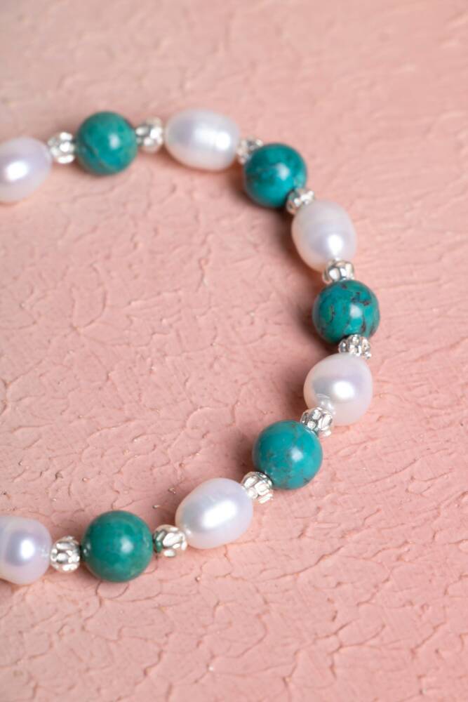 Firuze (Turkuaz), İnci Gümüş Aparatlı Doğal Taş Bileklik