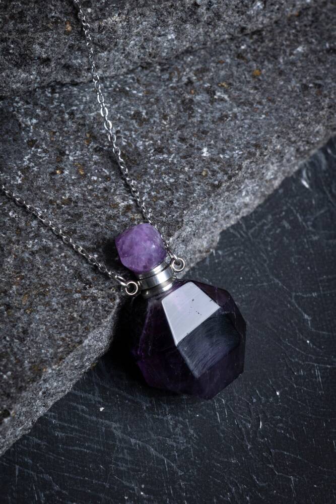 Sertifikalı Florit Doğal Taş Esans Şişesi Kolye