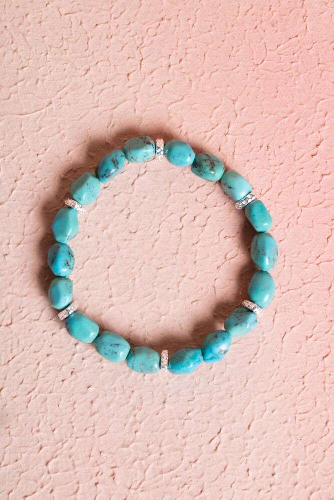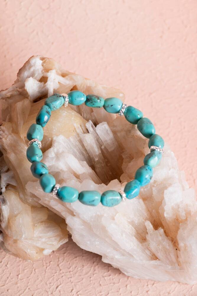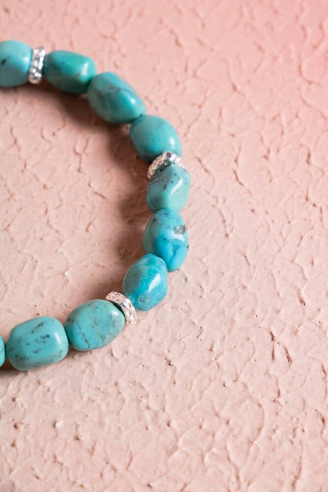 Turkuaz'ın kendine has damarlı yapısı ve canlı rengi, bileğinize doğanın enerjisini taşır. Bu zarif bileklik, hem günlük kullanım hem de özel günler için idealdir, enerjinizi sürekli olarak yükseltir ve dengeler.