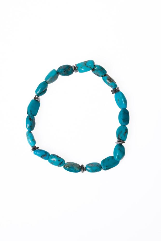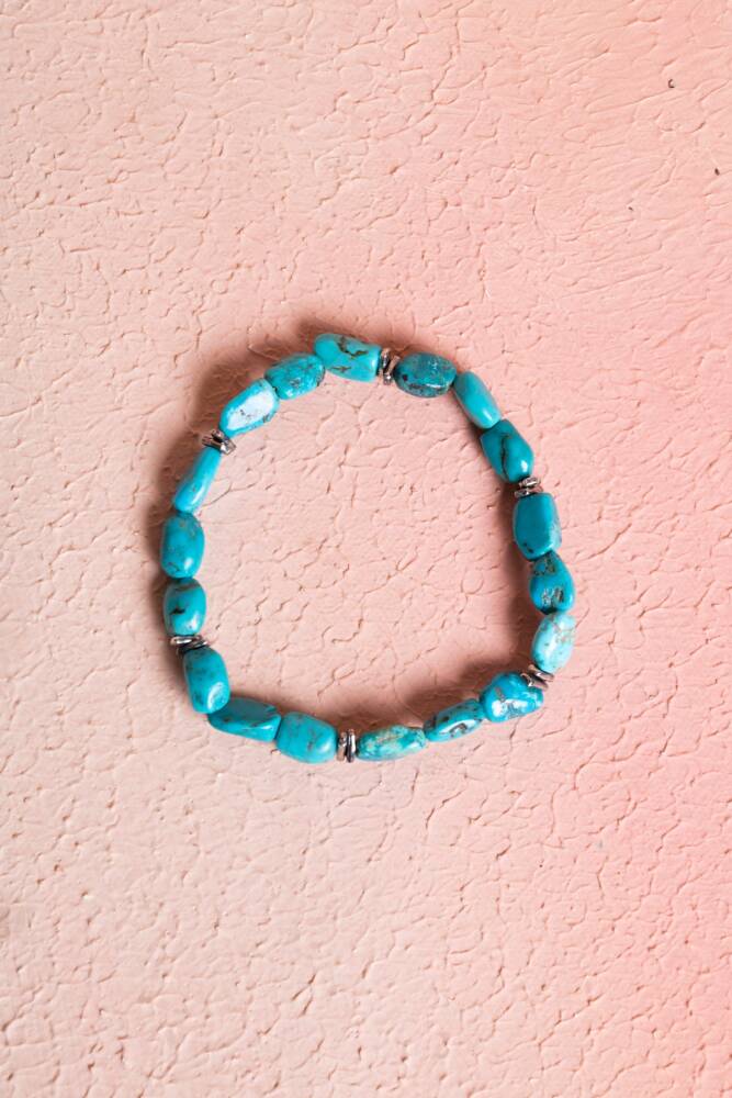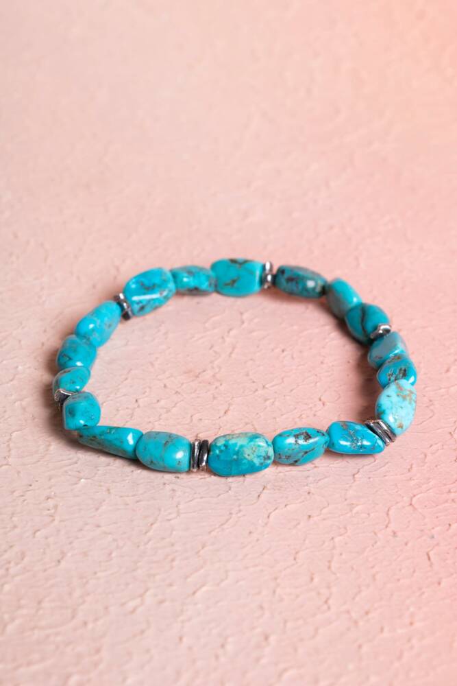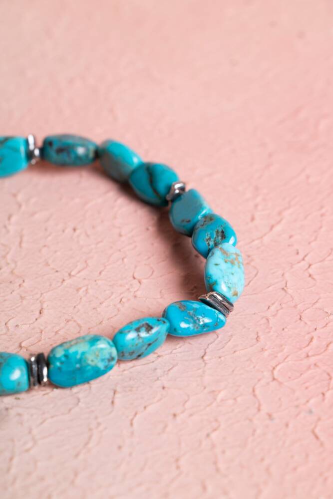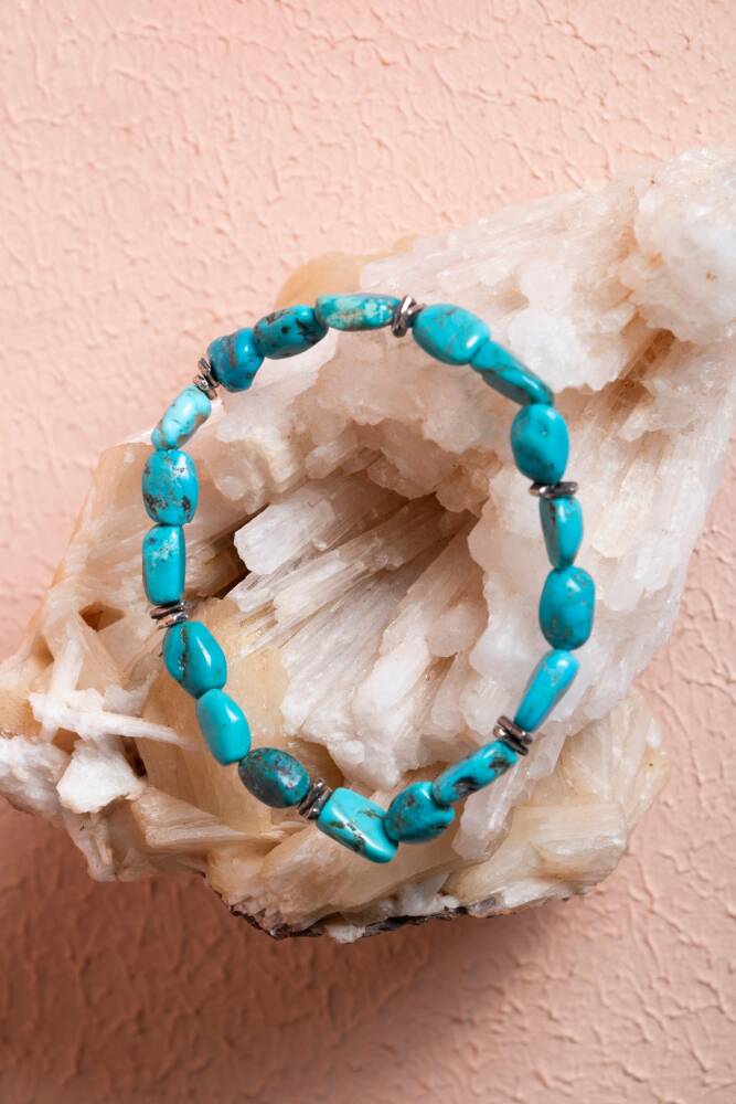 Turkuaz'ın kendine has damarlı yapısı ve canlı rengi, bileğinize doğanın enerjisini taşır. Bu zarif bileklik, enerjinizi sürekli olarak yükseltir ve dengeler.
