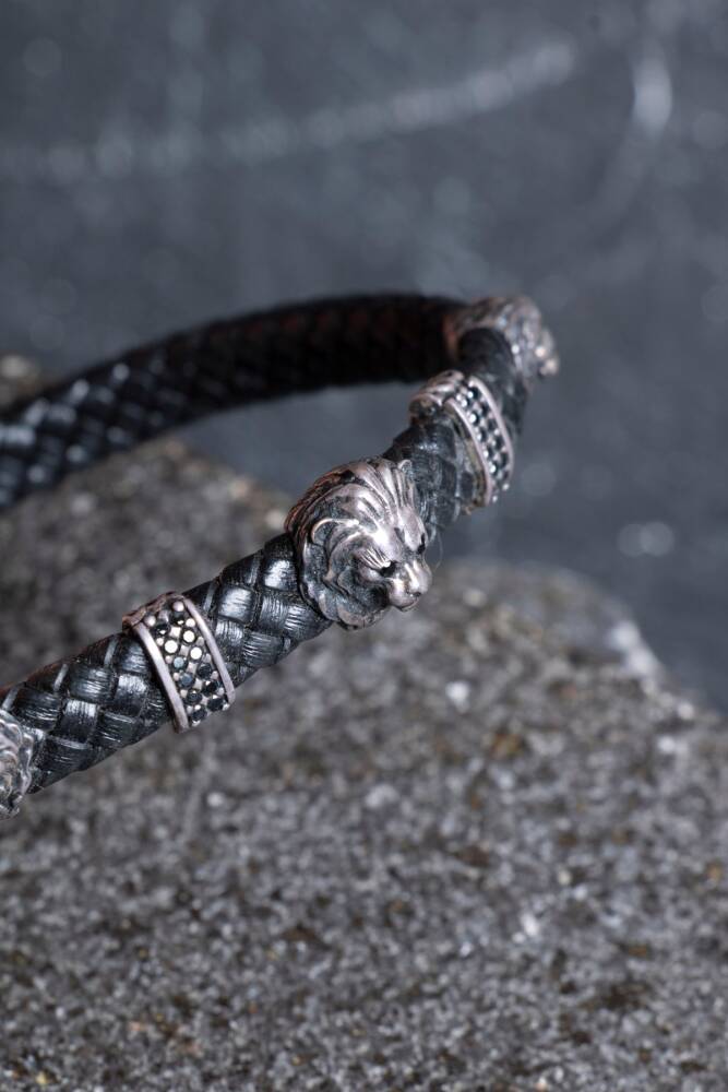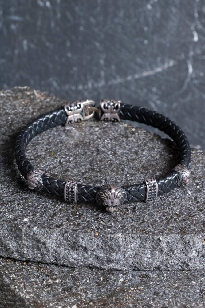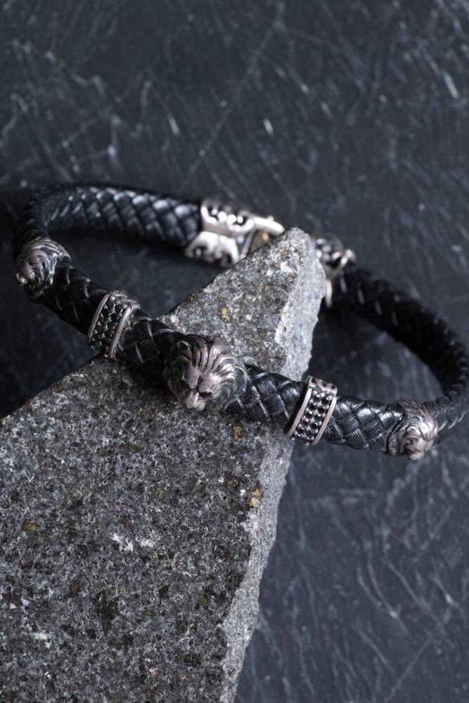 Gücün, asaletin ve yenilmezliğin ebedi sembolü olan Aslan figürü, yüksek kaliteli gümüş işçiliği ve hakiki deri kordonun maskülen tavrıyla bu özel tasarımda hayat buldu. Bu bileklik; liderlik vasıflarını ruhunda taşıyan, kararlı ve duruşundan ödün vermeyen modern erkekler için tasarlandı.
