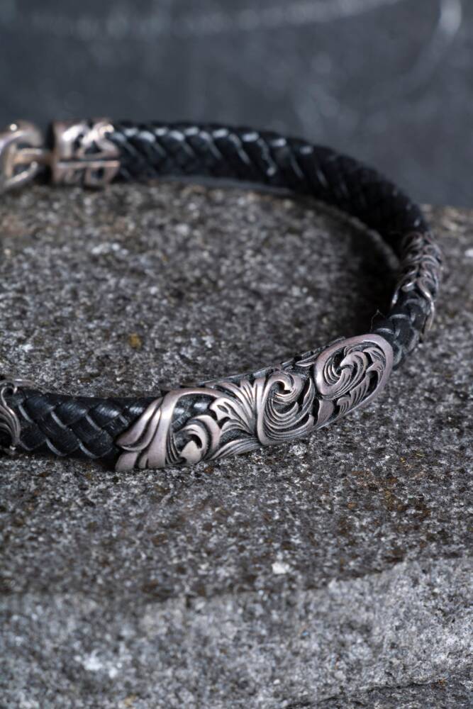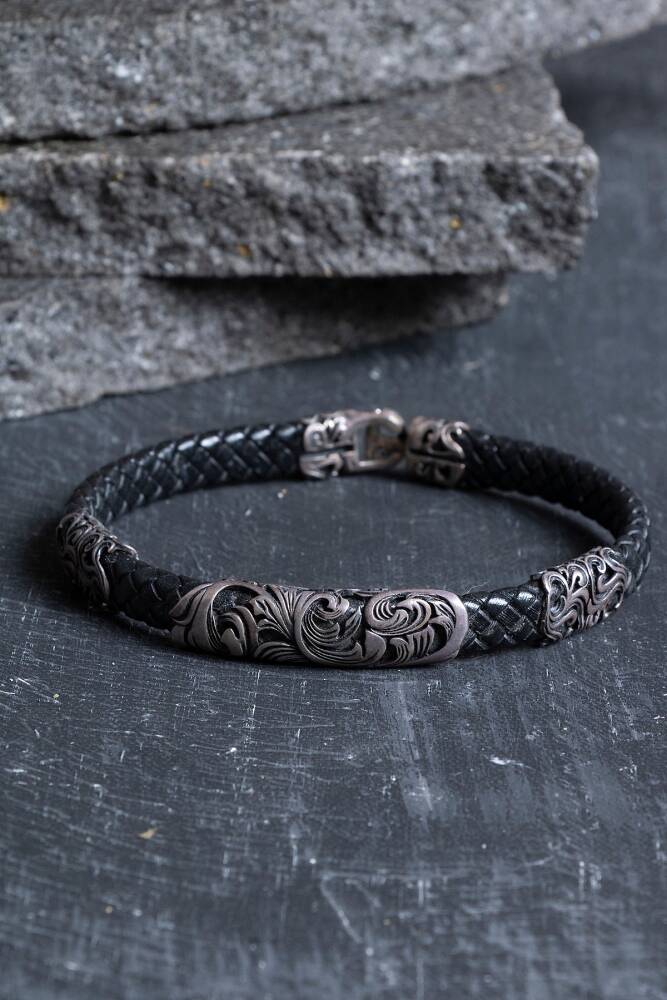 Yaşamın döngüsünü ve büyümesini temsil eden Yaprak figürü, yüksek kaliteli gümüş işçiliği ve hakiki derinin zamansız dokusuyla bu tasarımda hayat buldu. Modern şehir hayatının içinde doğaya bir selam duruşu niteliğinde olan bu bileklik, minimalist şıklığı güçlü bir sembolizmle birleştiriyor.