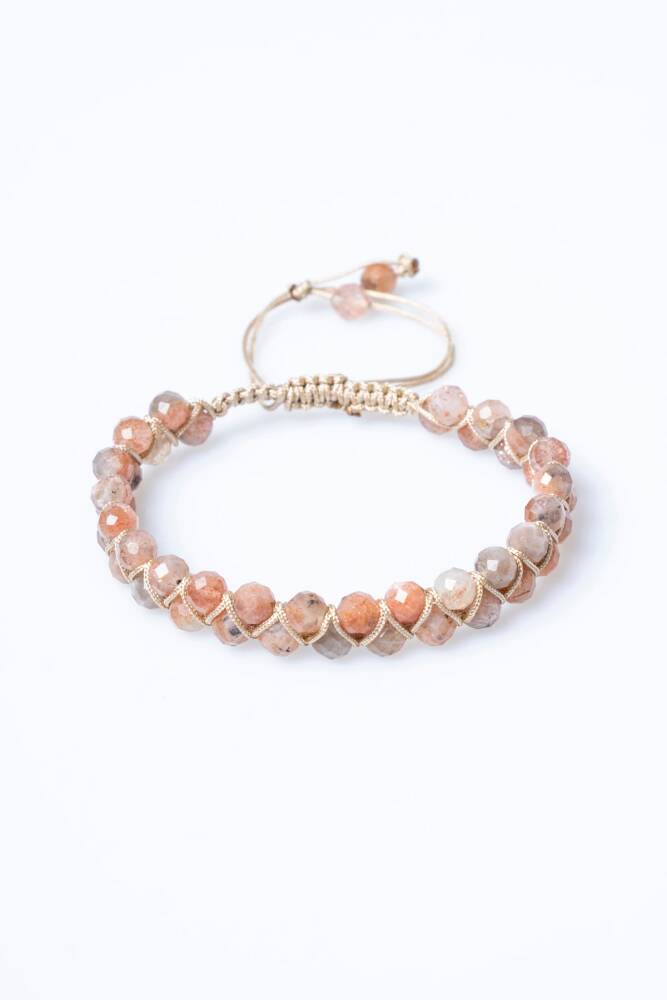 Güneş Taşı Çift Sıra Makrome Bileklik (6 mm)