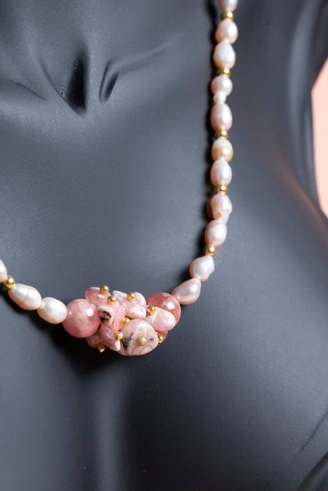 Güneş Taşı & İnci Doğal Taş Kolye
