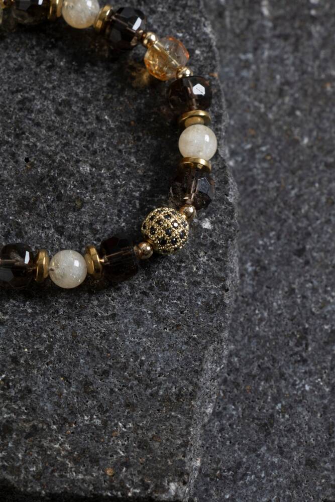 Bu zarif bileklik, sertifikalı güneş taşı ve pembe kuvarsın huzur veren birleşimiyle tasarlanmıştır. Güneş taşı neşe, canlılık ve özgüven enerjisi sunarken; pembe kuvars ise sevgi, şefkat ve duygusal dengeyi destekler. Pembe tonlardaki detaylarıyla hem feminen hem de enerjik bir duruş sergileyen bu model, günlük stilinize zarif bir dokunuş katar.
