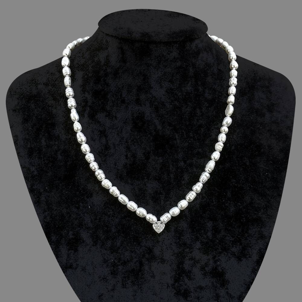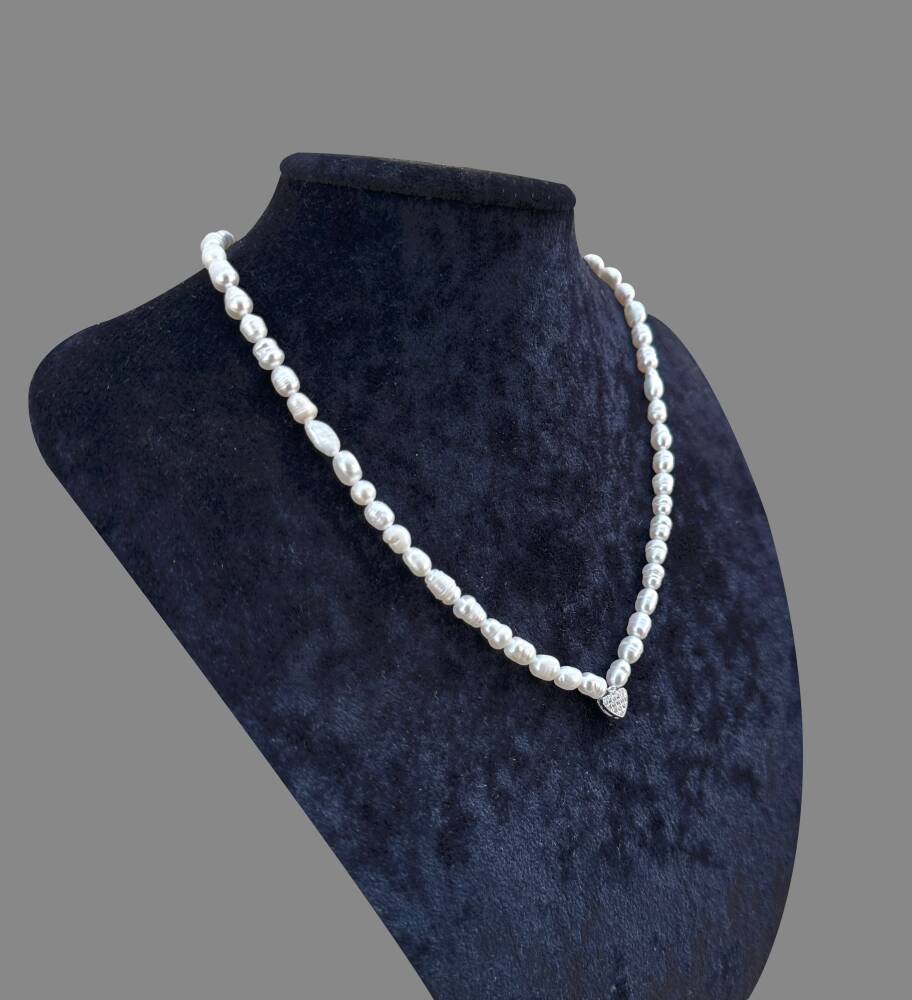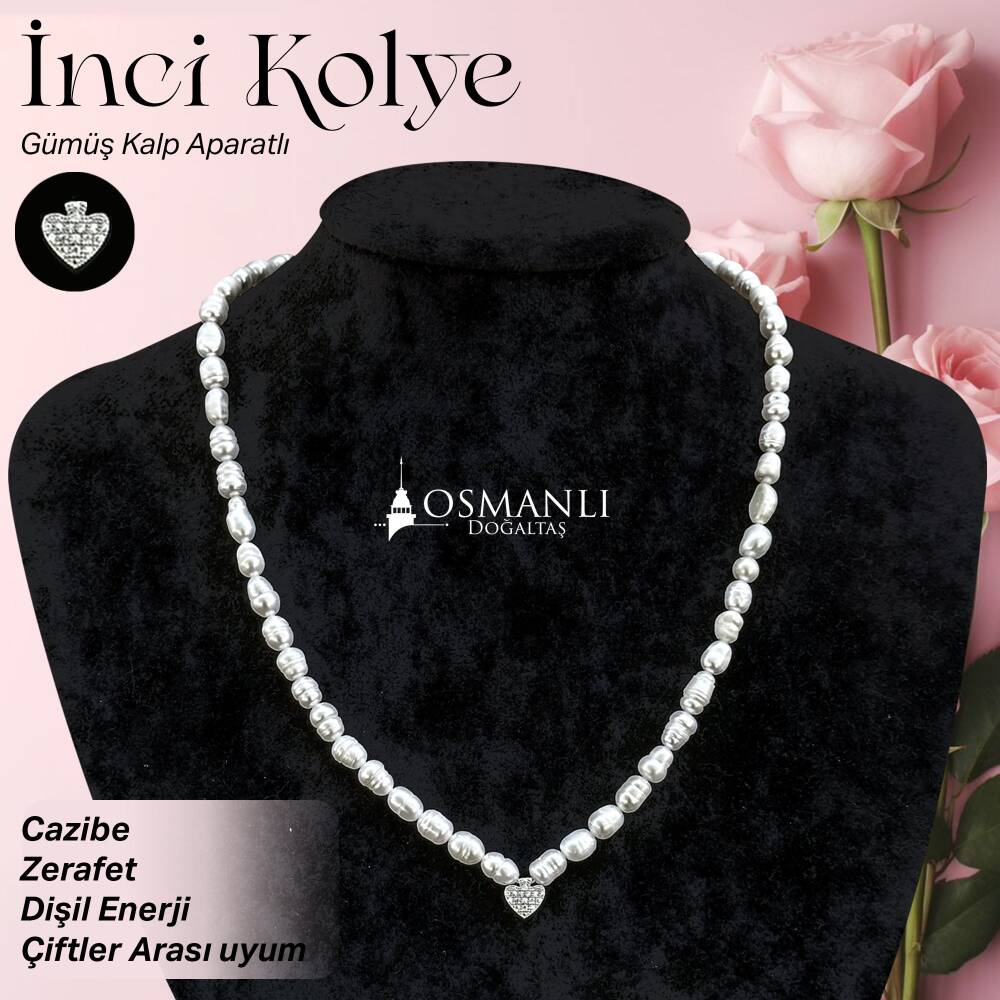 Sertifikalı Hakiki Orijinal İnci Doğal Taş Gümüş Aparatlı (Kalp Aparatlı) Kolye