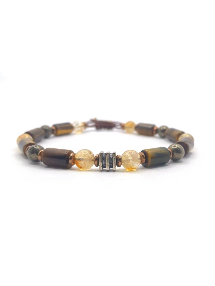 Sitrin Taşı Özellikleri: Refah ve zenginlik getirir. Keyif verir, keyiflendirir. İletişimi kuvvetlendirir, konsantrasyonu artırır ve aklı geliştirir. Pirit Taşı Özellikleri: Söylenen sözlerin ve hareketlerin altındaki gerçeği görebilmeyi sağlar. Parayı ve zenginliği çeker. Ticarette başarı sağlar. Kaplan Gözü Rekabet ortamında ve iş hayatında erkeklerin cesaretini artırır, kişinin korkularını yenmesine yardımcı olur. İradeyi güçlendirir. Psikolojik zorlanmaları yenmesine yardım eder. Endişeleri hafifletir. Kişinin Güce ihtiyacı olduğunda yorgunluğunu giderir, uyuşukluğu ortadan kaldırır, motivasyon sağlar. Özellikle baş ağrılarına iyi geldiği söylenir. Hematit Önemli bir konuşma yapılacağı zaman heyecan halini azaltır, ortamda sözünün geçmesini sağlar. Hayatta kalma iç güdüsünü artırır. Cesaret, irade ve özgüven duygularını artırır. Kötü enerjileri topladığı için mekanlardaki enerji temizlikleri için kullanılır. Vücut ağrılarına iyi geldiği söylenir.
