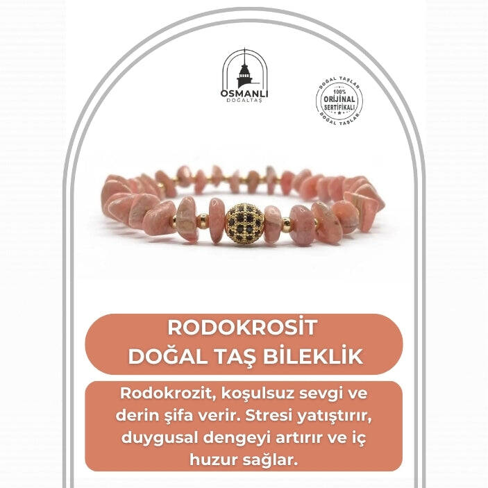 Sertifikalı Hakiki Orijinal Rodokrosit Rondel Kesim Doğal Taş Misinalı Bileklik