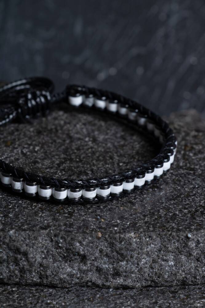 Havlit Özel Tasarım Deri ve Doğal Taş Makrome Bileklik Zihinsel sessizlik ve modern tasarımın güçlü birleşimi. Dinginliğin simgesi Havlit, bu özel tasarımda hakiki deri kordonlar ve el işçiliği makrome örgüsüyle bir araya geliyor. Beyazın saflığı ile derinin maskülen dokusunu harmanlayan bu bileklik, hem modern bir aksesuar hem de stresli günlerde yanınızdan ayırmak istemeyeceğiniz bir huzur kaynağıdır. Havlit Taşının Enerji Rehberi Zihinsel Sakinlik: Havlit, aşırı çalışan zihni yatıştırmasıyla bilinir. Uykusuzluk, stres ve öfke gibi durumlarda dinginlik verir. Farkındalık: Kişinin kendi iç sesini duymasına yardımcı olur, bencilliği azaltır ve sabrı geliştirir. Odaklanma: Zihindeki gürültüyü susturduğu için ders çalışma veya derin odaklanma gerektiren işlerde başarıyı destekler. Öğrenme İsteği: Bilgiye olan merakı artırdığına ve hafızayı güçlendirdiğine inanılır. Tasarım ve İşçilik Özellikleri A Kalite Havlit Taşları: Havlit'in mermer desenli, gri damarlı beyaz dokusu, her taşın kendine has bir desene sahip olmasını sağlayarak bilekliğinizi eşsiz kılar. Hakiki Deri ve Makrome: Bilekliğin yan kısımlarında kullanılan kaliteli deri şeritler, el işçiliği makrome örgüleriyle taşlara bağlanmıştır. Bu yapı bilekliğe hem esneklik hem de rustik bir şıklık katar. Özel Kilit Sistemi: Genellikle ayarlanabilir asansörlü makrome kilit veya şık bir metal düğme kapama ile her bilek ölçüsüne uyum sağlayacak şekilde tasarlanır. Dayanıklı Yapı: Kullanılan paraşüt ipleri ve deri kordonlar sayesinde günlük aktif kullanıma ve zamana karşı oldukça dayanıklıdır. Neden Bu Özel Tasarımı Tercih Etmelisiniz? Zarif Kontrast: Havlit'in bembeyaz yüzeyi ile siyah veya kahverengi deri arasındaki uyum, bileğinizde çok karakteristik bir duruş sergiler. Saat Yanına Mükemmel Uyum: Deri detayları sayesinde özellikle çelik veya deri kordonlu saatlerin yanına takıldığında modern bir katmanlı görünüm oluşturur. Stres Yönetimi: Gün boyu parmaklarınızın arasında taşların pürüzsüz dokusunu hissetmek, doğal bir 'stres topu' etkisi yaratarak sizi sakinleştirir.