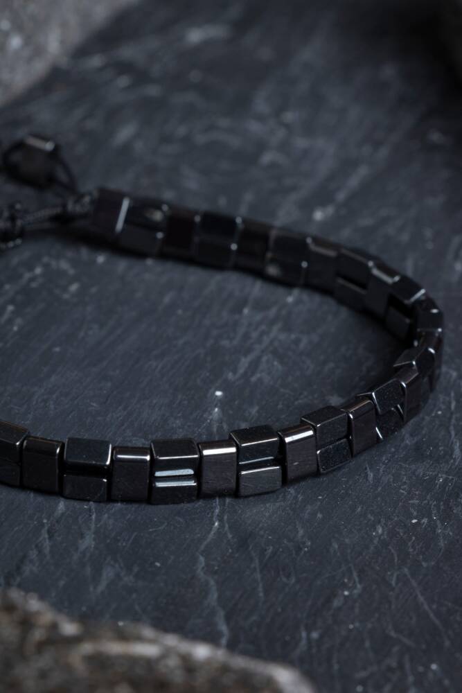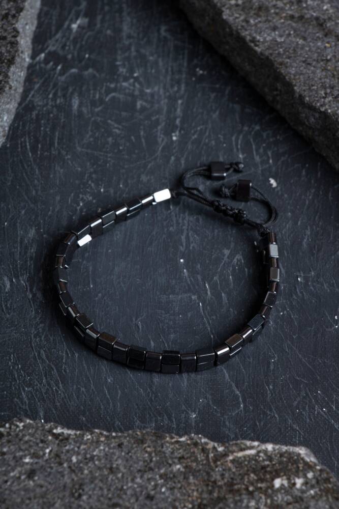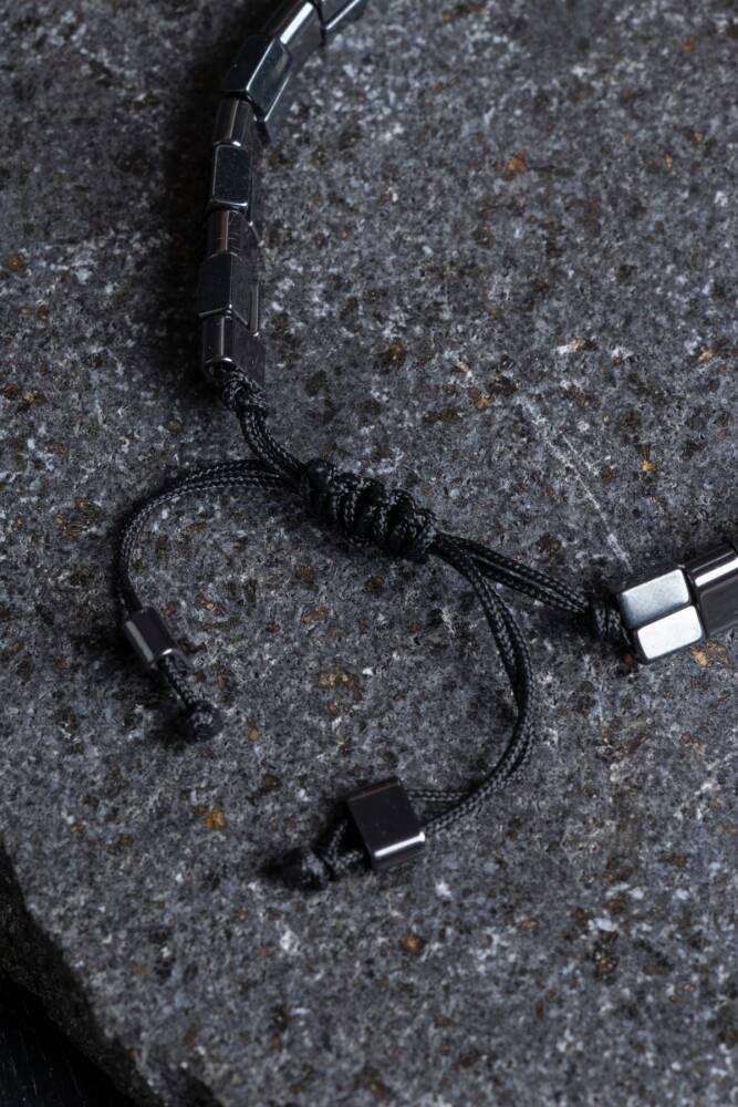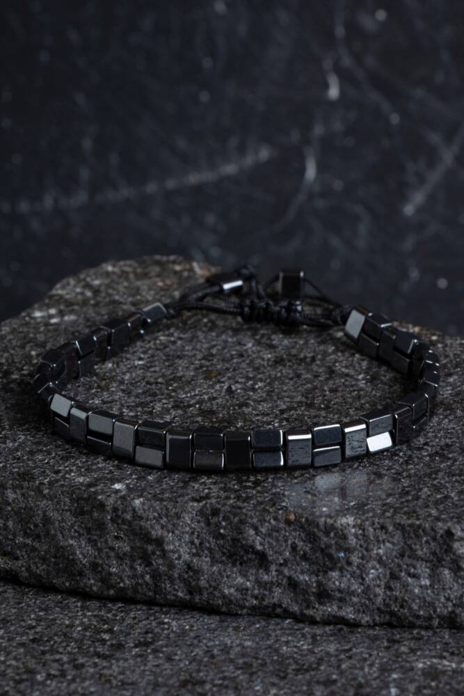 Sertifikalı Hematit Doğal Taş Makrome Bileklik (SK:153)