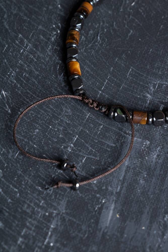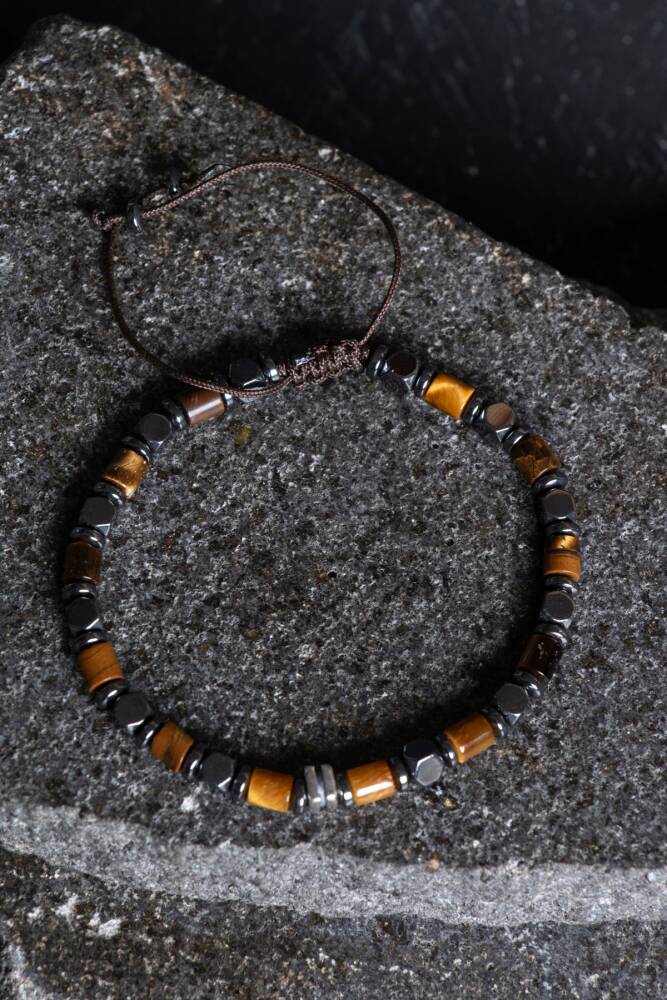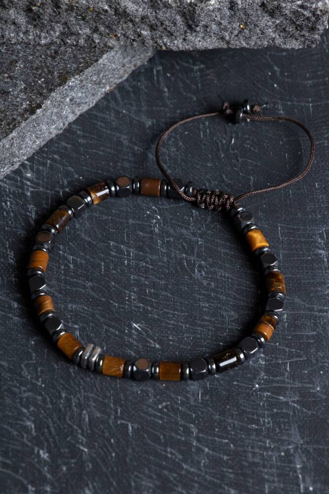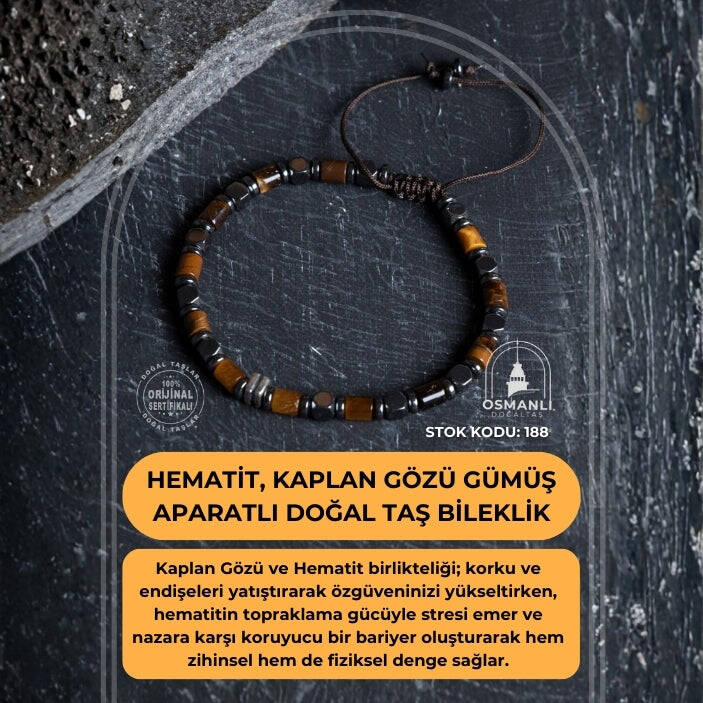 Doğanın en karizmatik taşları olan Hematit ve Kaplan Gözü, gerçek gümüş aparatlar ve dayanıklı makrome örgüsüyle bu özel tasarımda bir araya geldi. Her bir düğümü titizlikle atılan bu bileklik; hem sizi negatif enerjilerden koruyan bir kalkan hem de stilinizi zirveye taşıyan seçkin bir aksesuardır.