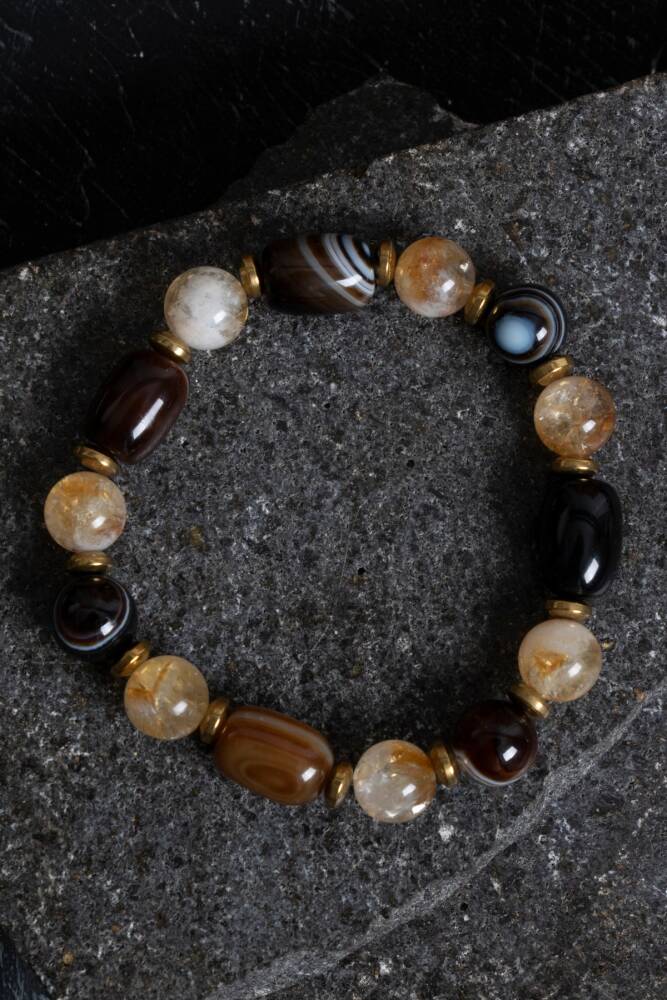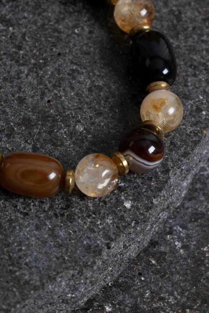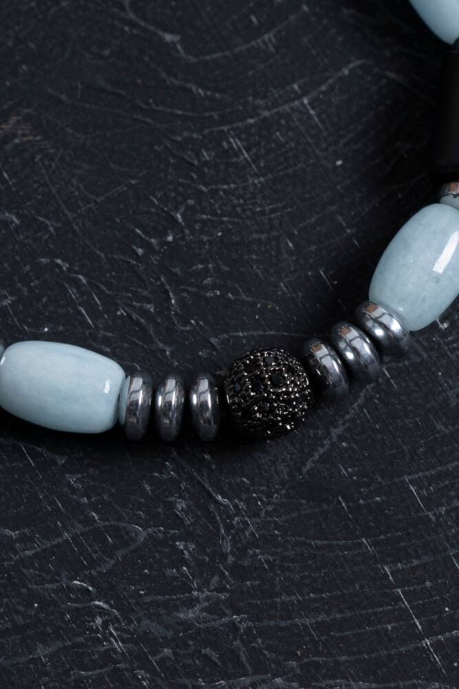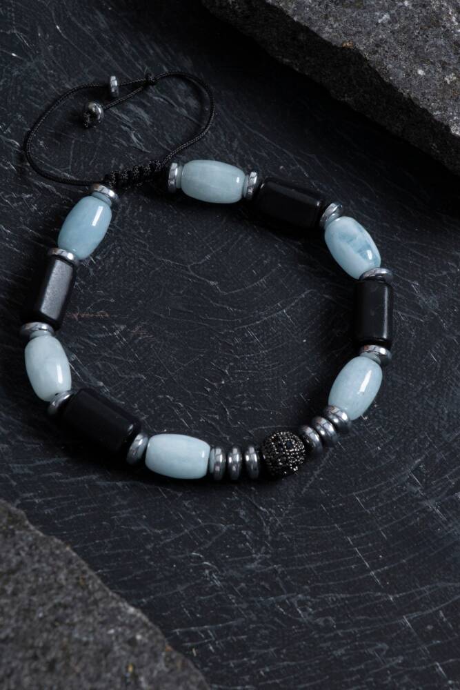 Bu özel bileklik, dengeleyici hematit ve sakinleştirici yeşim taşlarıyla tasarlanmıştır. Modern görünümüyle hem gündelik hem de özel kombinlere uyum sağlar.