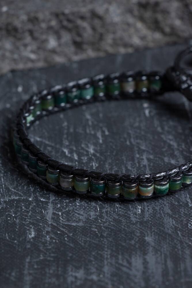 Hint Akik Özel Tasarım Deri ve Doğal Taş Makrome Bileklik Doğanın binbir rengini ve toprağın koruyucu gücünü bileğinizde taşıyın. 'Karmaşa içindeki uyum' olarak bilinen Hint Akik (Indian Agate), bu özel tasarımda hakiki deri ve el emeği makrome işçiliğiyle buluşuyor. Her bir taşı farklı bir renk ve desen barındıran Hint Akik, derinin rustik dokusuyla birleştiğinde ortaya tam bir 'kişiye özel' sanat eseri çıkıyor. Hint Akik Taşının Enerji Rehberi Duygusal Denge: Hint Akik, eski çağlardan beri 'teselli taşı' olarak bilinir. Duygusal travmaları yatıştırmaya, içsel huzuru bulmaya ve stresi azaltmaya yardımcı olur. Güç ve Koruma: Kişiye fiziksel ve zihinsel güç verir. Negatif enerjilere karşı bir kalkan oluşturarak kendinizi daha güvende hissetmenizi sağlar. Şans ve Bereket: Hint geleneklerinde bu taşın kötü şansı uzaklaştırdığına ve sahibine bereket getirdiğine inanılır. Renklerin Gücü: Yeşil, kahverengi, kızıl ve gri tonlarının karışımı, tüm çakralar üzerinde dengeleyici bir etki yaratır. Tasarım ve İşçilik Özellikleri Eşsiz Taş Dizilimi: Hint Akik doğal yapısı gereği her taşta farklı bir desen sunar; bu da bilekliğinizin dünyada tek olmasını sağlar. Hakiki Deri Kombinasyonu: Yüksek kaliteli deri kordonlar, taşların doğal ve ham görüntüsünü destekleyerek tasarıma maskülen ve güçlü bir karakter katar. Makrome Sanatı: Taşlar ve deri, kopmaya dayanıklı özel mumlu ipler veya paraşüt ipleriyle makrome tekniği kullanılarak birleştirilmiştir. Ayarlanabilir Kilit: Asansörlü kilit sistemi sayesinde her bilek ölçüsüne tam uyum sağlar, takıp çıkarması son derece kolaydır. Neden Bu Özel Tasarımı Tercih Etmelisiniz? Doğal ve Bohem Stil: Hint Akik'in toprak tonları, özellikle keten gömlekler, deri ceketler ve günlük spor kıyafetlerle kusursuz bir uyum yakalar. Dayanıklılık: Deri ve makrome birleşimi, bilekliğin uzun yıllar formunu korumasını sağlar. Doğada veya şehirde, her ortamda güvenle kullanılabilir. Odaklanma ve Dinginlik: Gün boyu taşların doğal soğukluğunu ve derinin yumuşaklığını hissetmek, zihninizi topraklamanıza yardımcı olur.