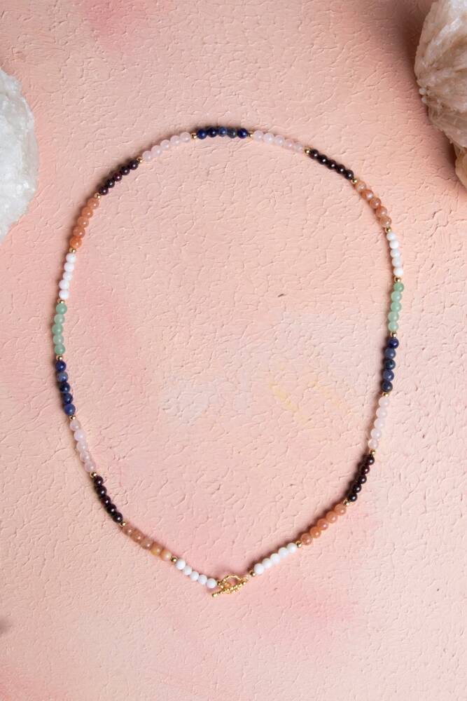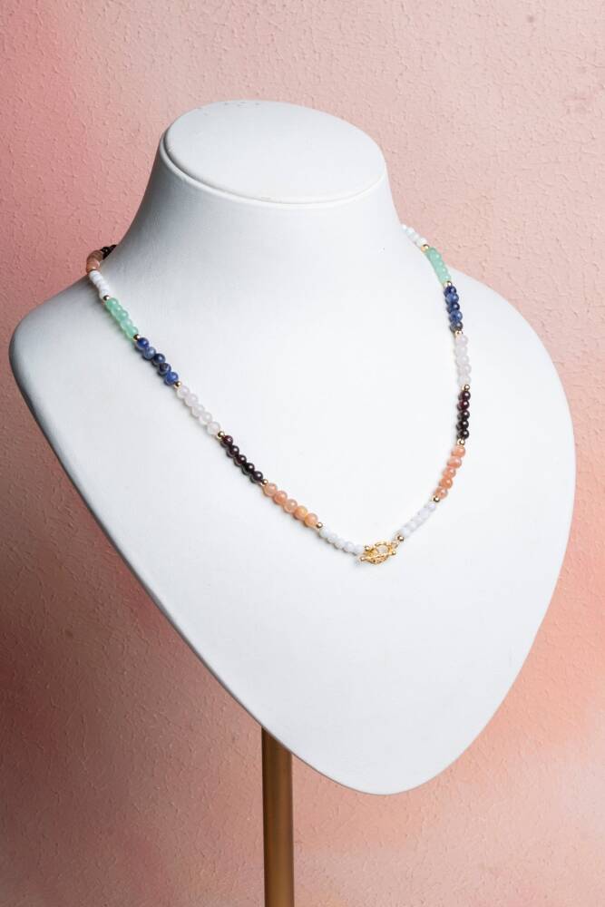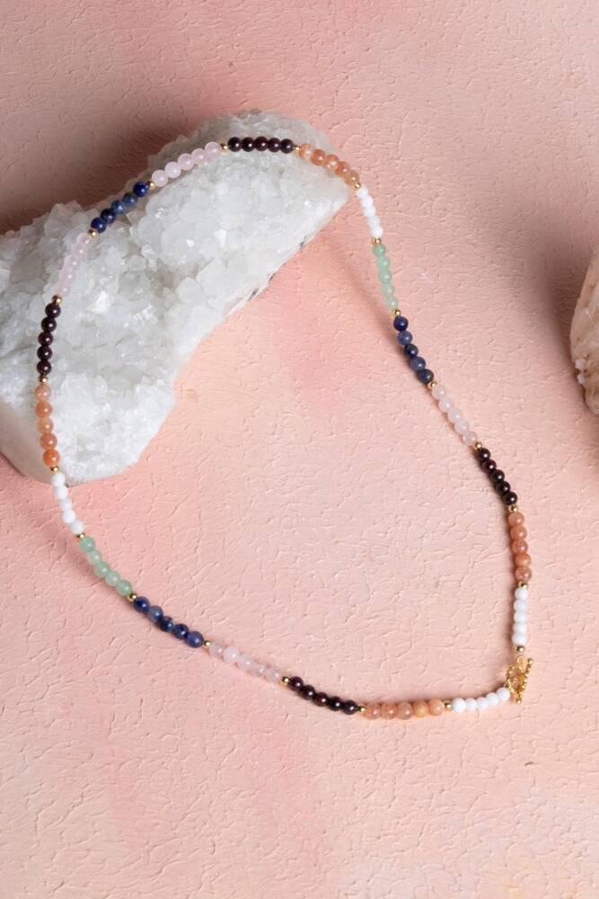 Bu özel 4mm doğal taş kolye, İkizler burcunun iletişim gücünü, yaratıcılığını ve içsel dengesini destekleyen özenle seçilmiş doğal taşlarla tasarlandı. 4mm'lik minik ve zarif küreler, kolyeye sade ama güçlü bir hava katıyor.