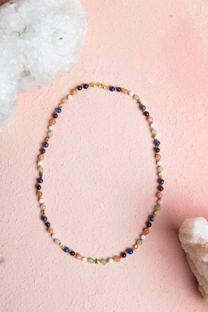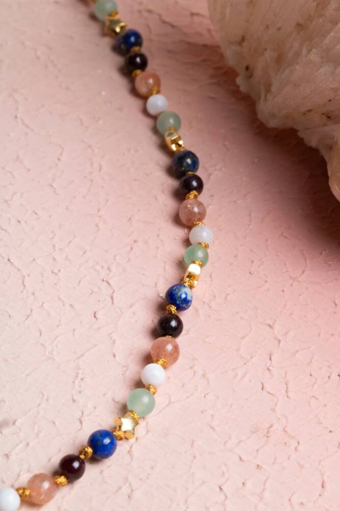 Zeka, iletişim ve merak... İkizler burcunun neşeli, meraklı ve sosyal ruhunu yansıtan bu özel gümüş yıldızlı kolye; Aventurin, Ay Taşı, Güneş Taşı, Lal, Pembe Kuvars ve Lapis Lazuli enerjisiyle tasarlandı. %100 doğal ve sertifikalı taşlarla el işçiliğiyle hazırlanan bu kolye, hem ruhsal destek sağlar hem de günlük stilinize şık bir dokunuş katar. Taşların Enerjisi: Aventurin: Şans, bolluk ve pozitif enerji çeker; içsel denge ve huzur verir. Ay Taşı: Sezgileri ve duygusal farkındalığı güçlendirir. Güneş Taşı: Neşe, canlılık ve özgüven aşılar; aydınlık bir ruh hali yaratır. Lal (Garnet): Tutkuyu, canlılığı ve motivasyonu artırır. Pembe Kuvars: Duygusal dengeyi sağlar, sevgi ve şefkat enerjisini artırır. Lapis Lazuli: Zihinsel berraklık, bilgelik ve güçlü iletişim yeteneği sunar. Öne Çıkan Özellikler: %100 doğal ve sertifikalı taşlar. İkizler burcuna özel güçlü taş kombinasyonu. 925 ayar gümüş yıldız detayı ile zarif tasarım. El işçiliği, dayanıklı ve şık kullanım. Günlük kombinlere hem enerji hem estetik katkı. Bu kolye, sadece bir aksesuar değil; İkizler burcunun zekasını, neşesini ve iletişim gücünü taşıyan özel bir parçadır.
