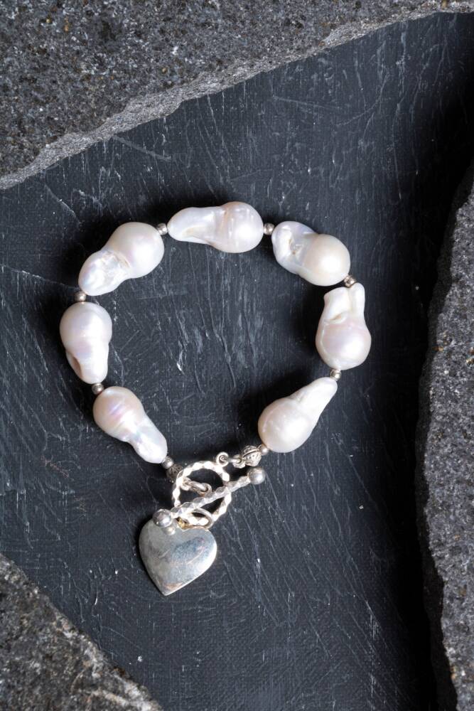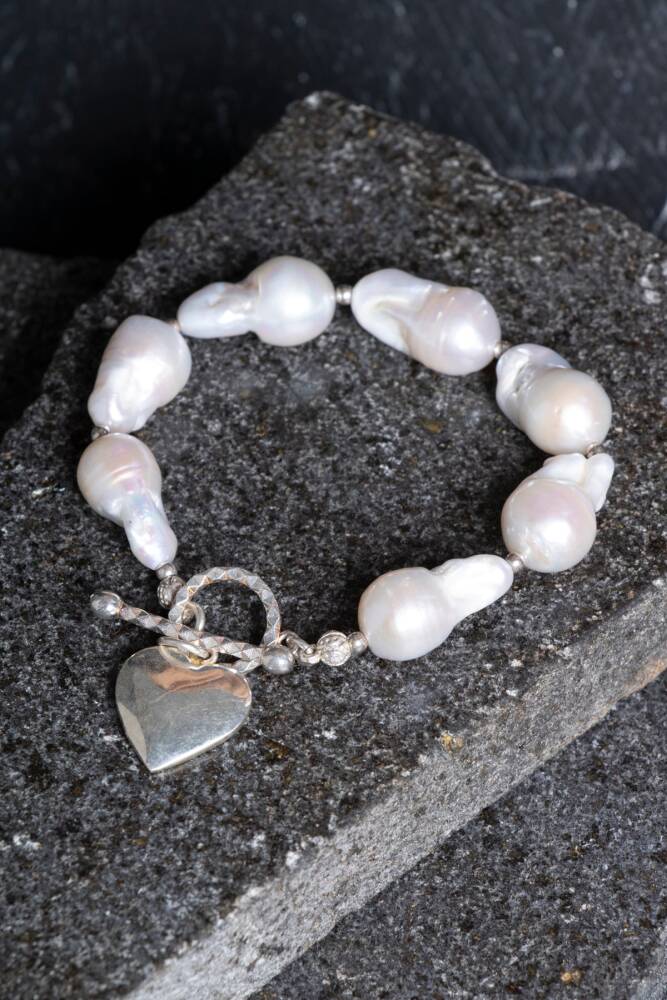 Yüzyıllardır zarafetin ve saflığın simgesi olan İnci, 925 ayar Gümüş Kalp aparatı ile yeniden yorumlandı. Doğanın derinliklerinden gelen incilerin ipeksi parlaklığı, sevginin en içten sembolü olan kalp figürüyle birleşerek zamansız bir aksesuar ortaya çıkardı. Bu bileklik, sadece bir takı değil, teninizde taşıyacağınız bir zarafet imzasıdır.