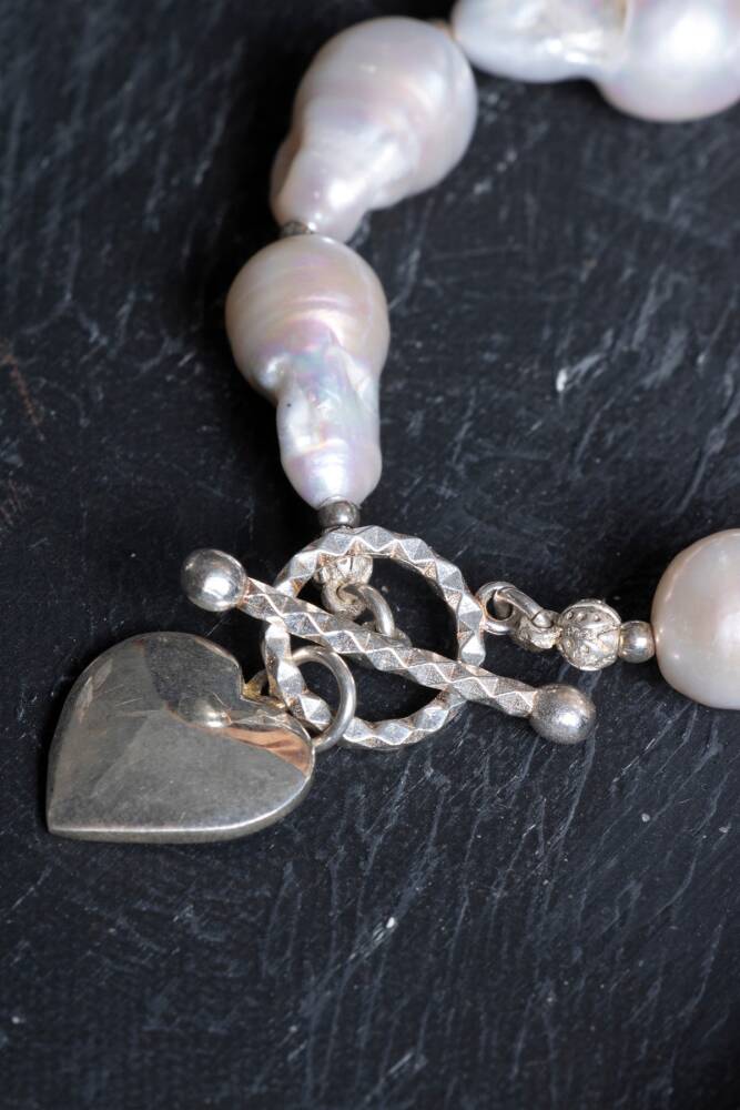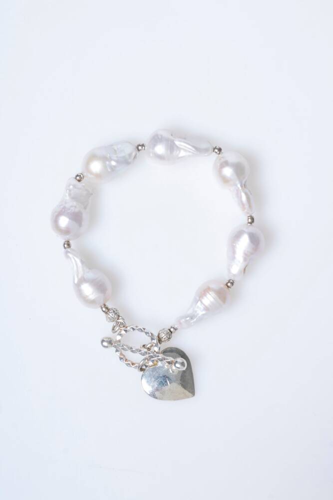 İnci Gümüş Kalp Aparatlı Doğal Taş Bileklik