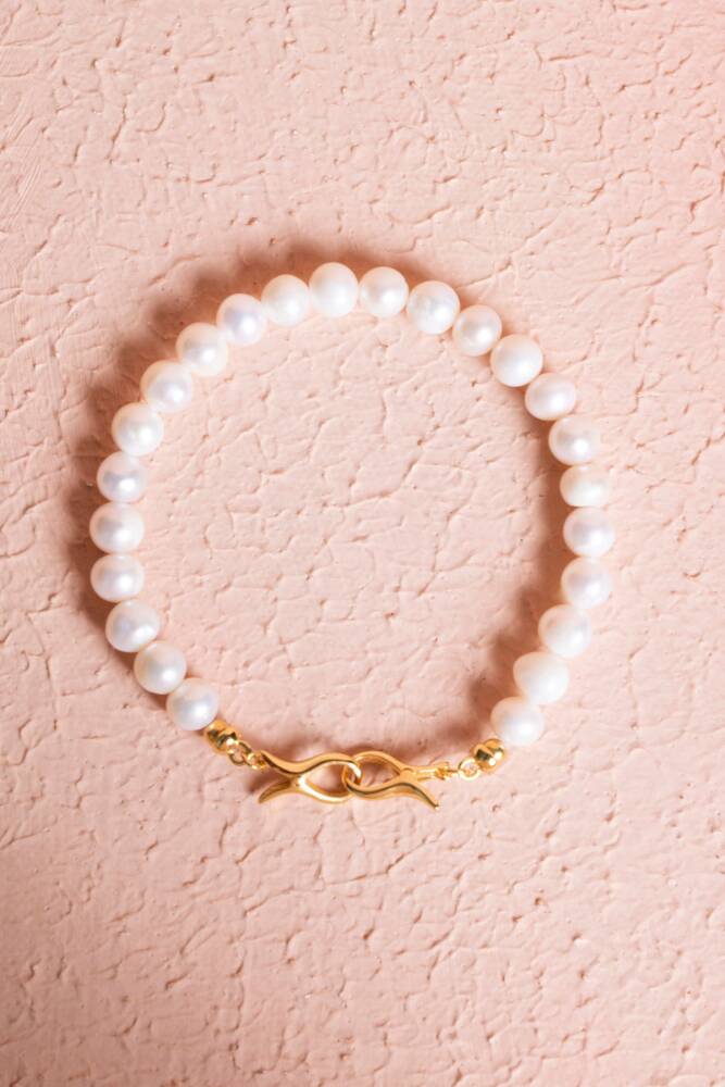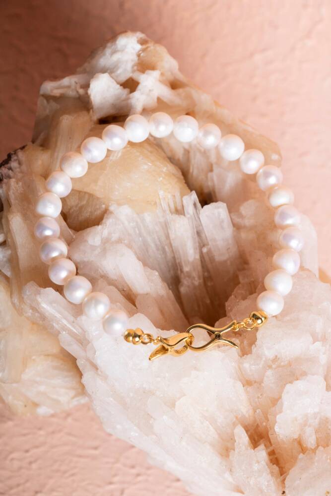 Sertifikalı İnci Gümüş Kapama Doğal Taş Bileklik (SK:053)