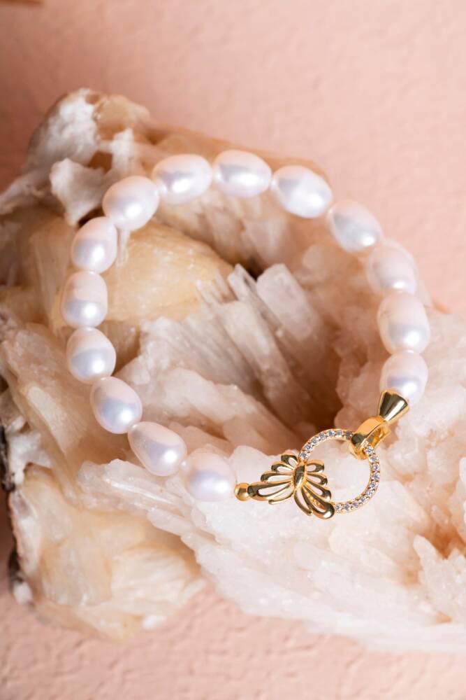 Zarafet, dönüşüm ve yenilenmenin enerjisini bileğinizde birleştirin. İnci'nin saflığı ve Kelebek figürünün özgürlüğü, şık bir Gümüş Aparat ile tamamlanarak bu özel bileklikte buluşuyor. Bu bileklik, sadece estetik bir aksesuar değil, aynı zamanda duygusal denge, huzur ve pozitif değişim sağlayan değerli bir objedir.