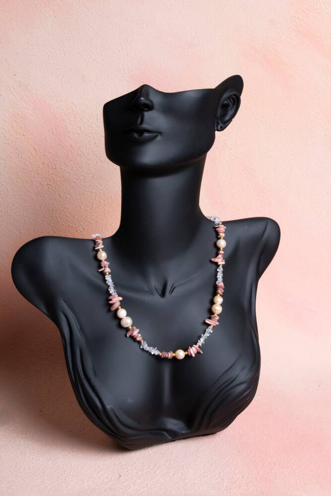 İnci, Kuvars, Rodokrozit Doğal Taş Kolye