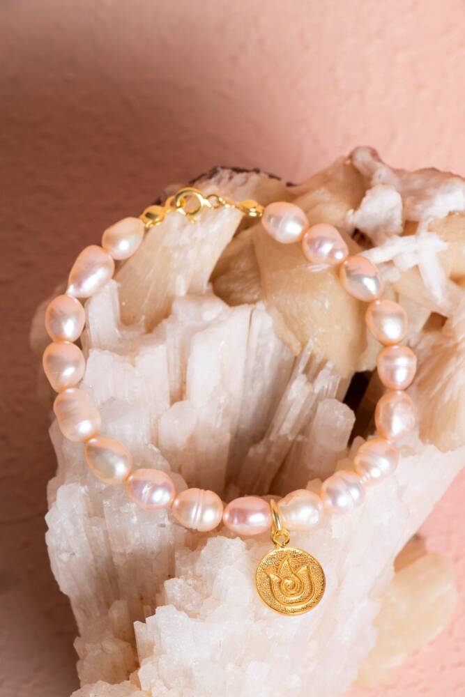 İnci'nin sedefli, narin ışıltısı, Lale motifinin zarifliği ile birleşerek bileğinize asil ve anlamlı bir dokunuş katar. Bu bileklik, enerjinizi sürekli olarak pozitif ve dengede tutar.
