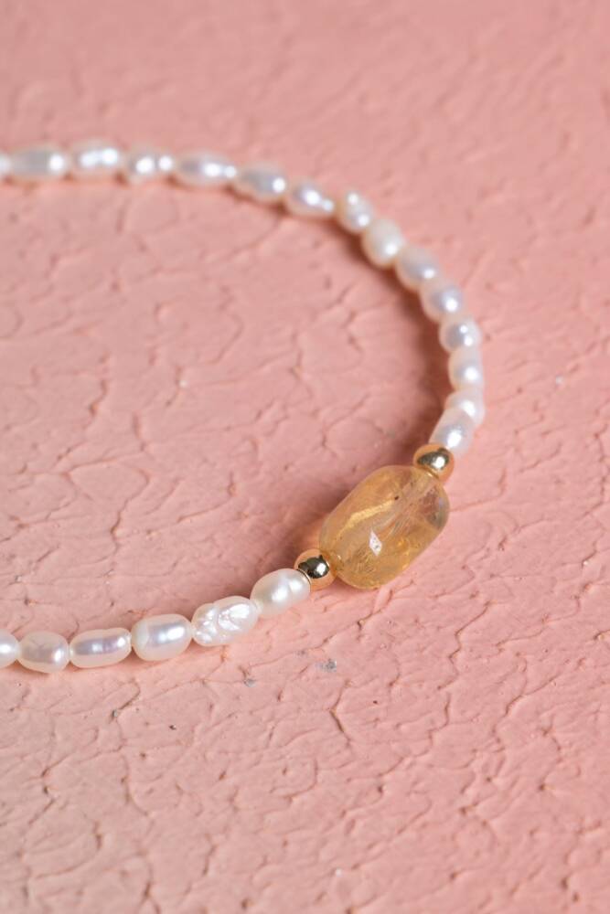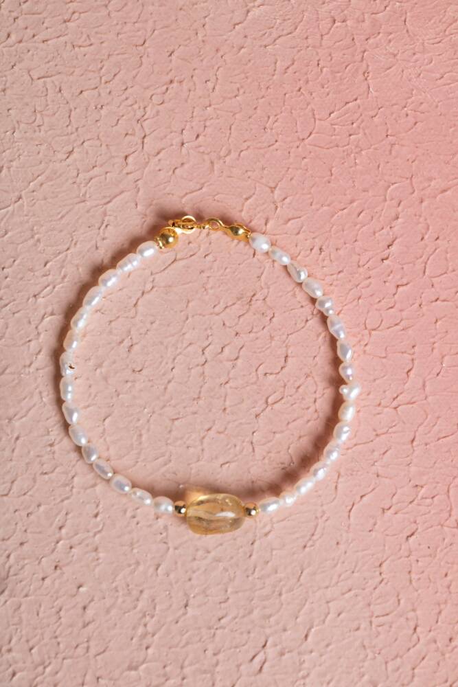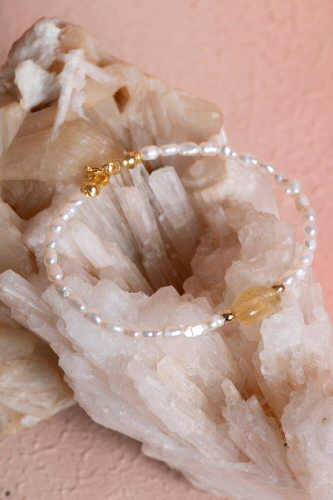 Zarafeti, bolluğu ve pozitif enerjiyi bileğinizde birleştirin. İnci'nin saflığı ve Sitrin'in güneşli enerjisi, şık ve güvenli bir Gümüş Kapama detayıyla tamamlanarak bu özel bileklikte buluşuyor. Bu bileklik, size duygusal denge, neşe ve refah sağlayan değerli bir objedir.