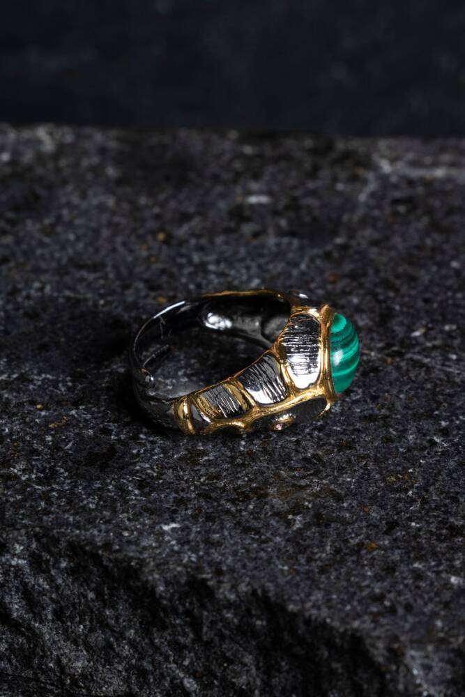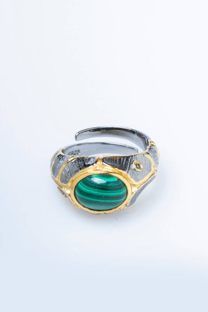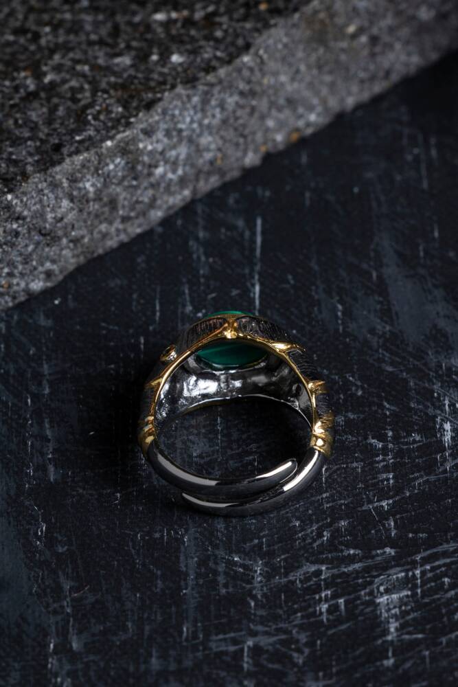 Özel Tasarım: Mistik Malahit enerjisini modern mühendislikle birleştiren bu benzersiz tasarım, parmağınızda cesur ve anlamlı bir ifade yaratır.