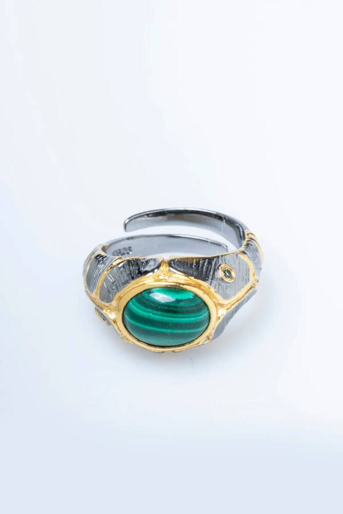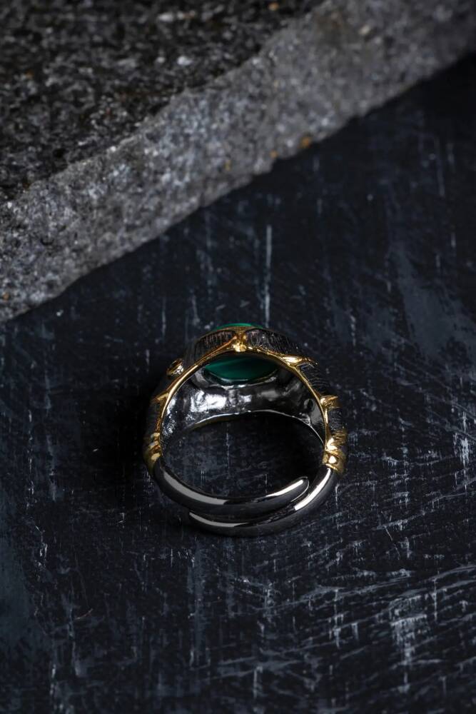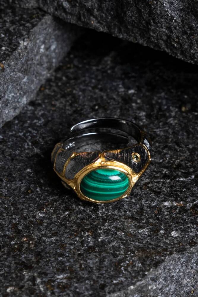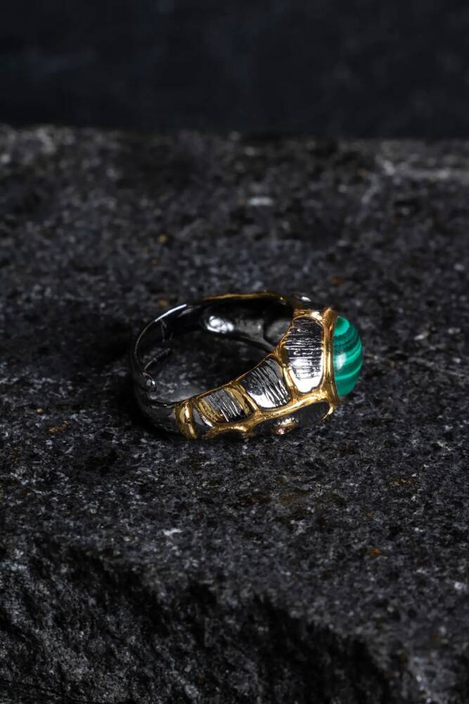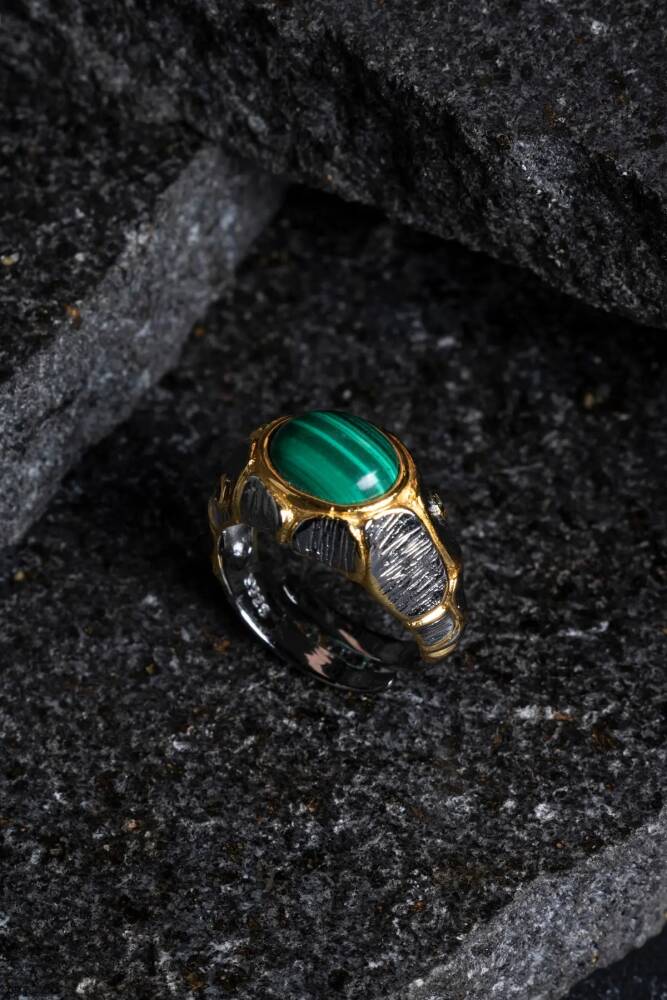 Sertifikalı İridyumlu Malahit Gümüş Özel Tasarım Yüzük (Kadın)