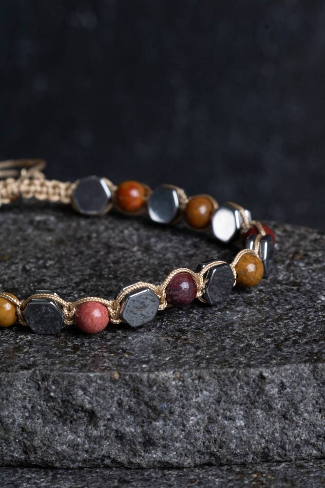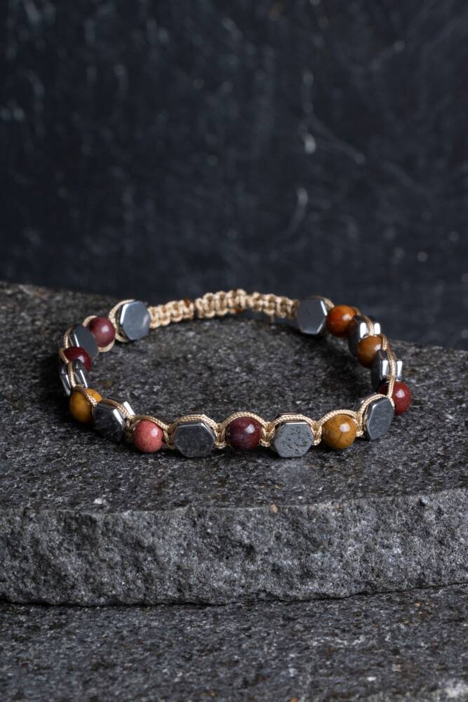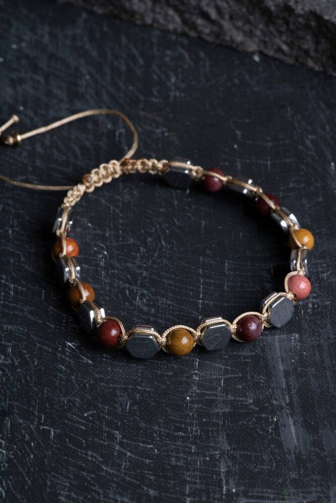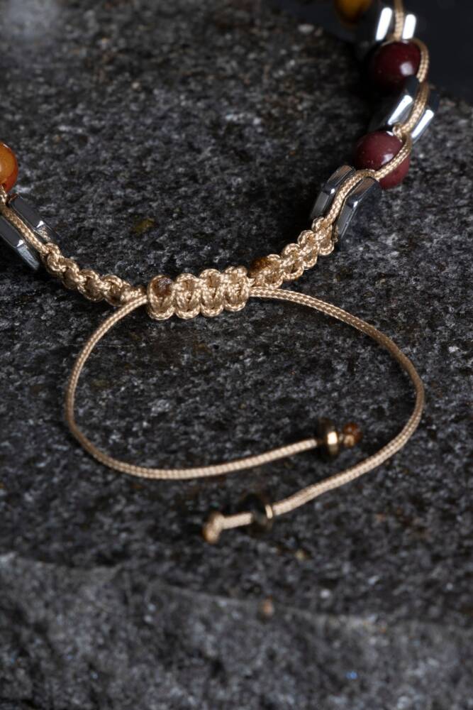 Jasper’in sağlam ve topraklayıcı enerjisi ile Hematit’in koruyucu gücü, erkeklere özel güçlü bir makrome bileklikte buluşuyor. El işçiliğiyle hazırlanan bu özel tasarım, %100 doğal ve sertifikalı taşlarla hem enerjinizi dengeler hem de stilinize modern bir dokunuş katar.