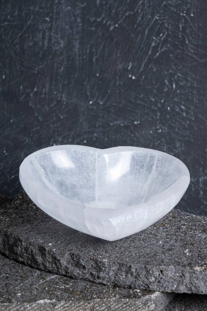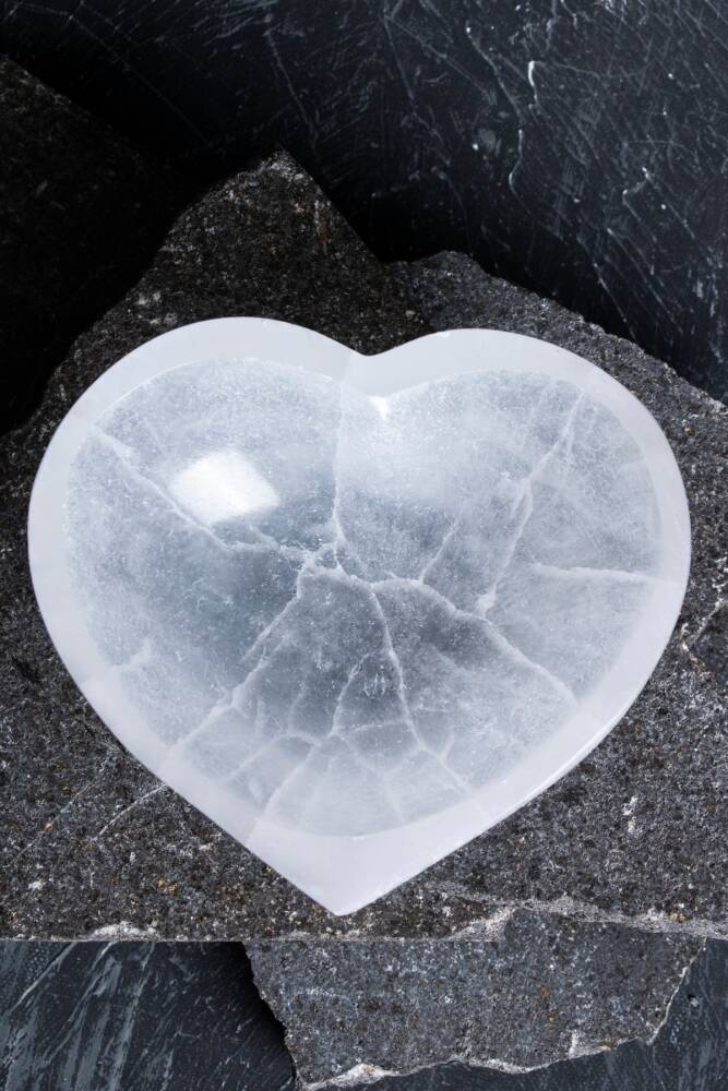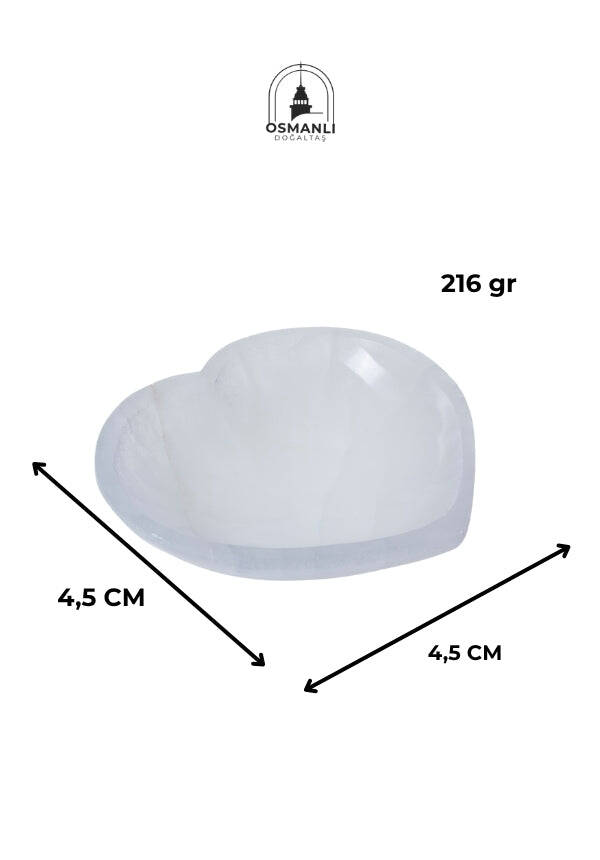 Romantik ve Ruhani Estetik: Kalp formu, Selenit'in yarı saydam, bembeyaz ışıltısıyla birleşerek zarif, romantik ve ruhani bir estetik sunar.