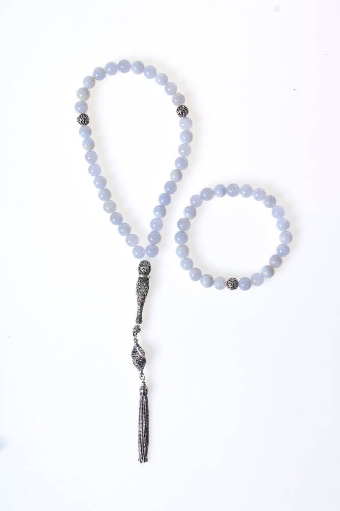 Sertifikalı Kalsedon 925 Ayar Gümüş 8 mm İmameli Tesbih & Bileklik Seti Huzur, dinginlik ve iletişimin sembolü olan Kalsedon doğal taşı ile tanışın. Zarif 925 Ayar Gümüş detaylarıyla tamamlanan Sertifikalı Kalsedon Tesbih & Bileklik Seti, hem şık bir aksesuar hem de duygusal dengeyi sağlayan özel bir obje olarak hayatınıza değer katacak. Kalsedon Taşının Büyüleyici Faydaları Huzur ve Dinginlik: Kalsedon, içsel huzuru teşvik eder, sakinleştirici etkisiyle stresi ve kaygıyı hafifletmeye yardımcı olur. Duygusal dengeyi destekler. İletişim ve Anlayış: Sözlü iletişimi ve kendini ifade etme yeteneğini güçlendirir. Anlayışı artırarak insanlar arasındaki bağları kuvvetlendirir. Negatif Enerji Emici: Çevredeki olumsuz enerjileri emerek pozitif bir atmosfer yaratır. Hem ruhunuzu hem de çevrenizi arındırmaya yardımcı olur. Cömertlik: Taşıyan kişide cömertliği, nezaketi ve iyi niyeti teşvik ettiğine inanılır. Bu özel set, orijinalliği ve kalitesi onaylanmış gerçek Kalsedon taşı kullanılarak üretilmiştir. Her bir parça, ustalıkla işlenmiş 925 ayar gümüş imame ve detaylarla zenginleştirilmiştir. Kalsedon'un doğal enerjilerinden gün boyu faydalanırken, zarif ve yumuşak renk tonlarıyla da stilinizi tamamlayın. Şimdi sipariş verin ve Sertifikalı Kalsedon 925 Ayar Gümüş Tesbih & Bileklik Seti ile hem ruhunuzu hem de iletişiminizi güçlendirmeye başlayın.